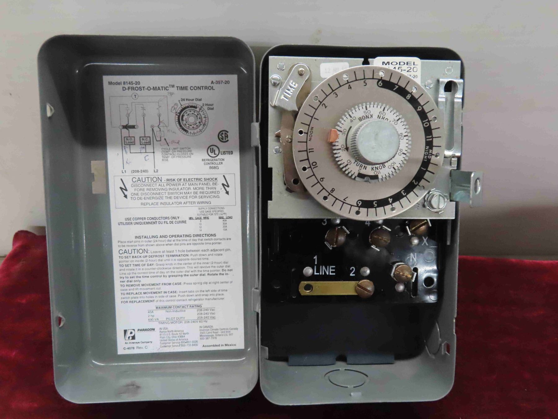Paragon Mechanical Defrost Timer For Walk In Freezer, 40 Amp, 2Hp