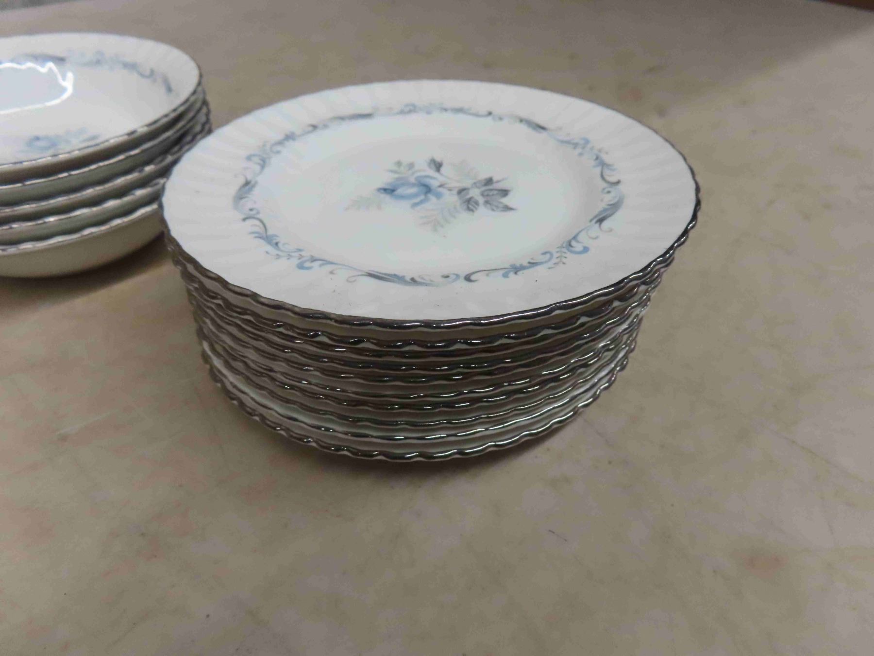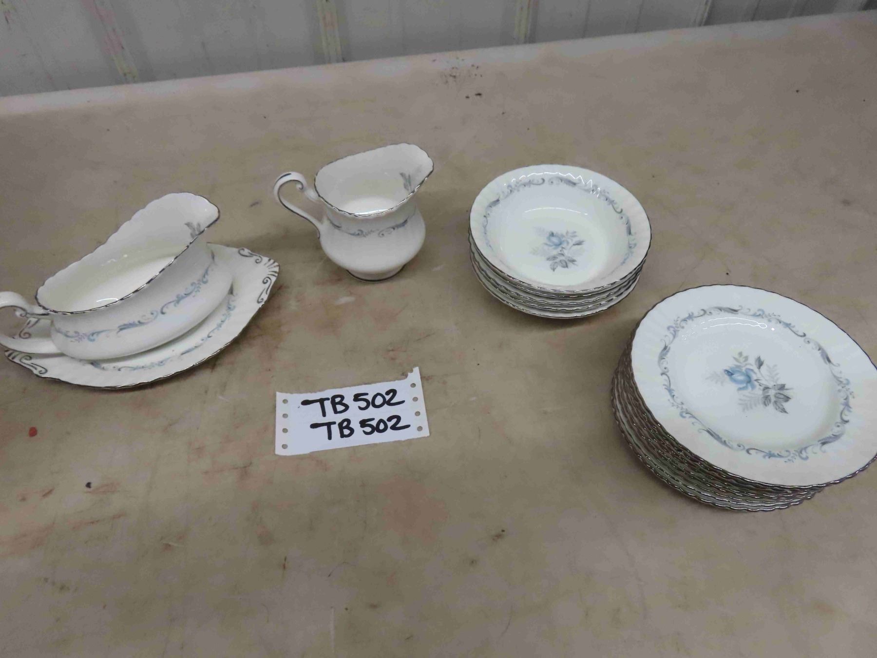 Paragon " Morning Rose" Bone China ; 5 Fruit Nappies, (10) 6" Plates, 1 Gravy Boat with Plate, Creamer