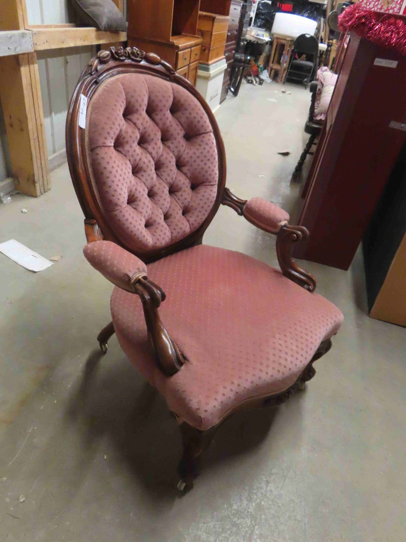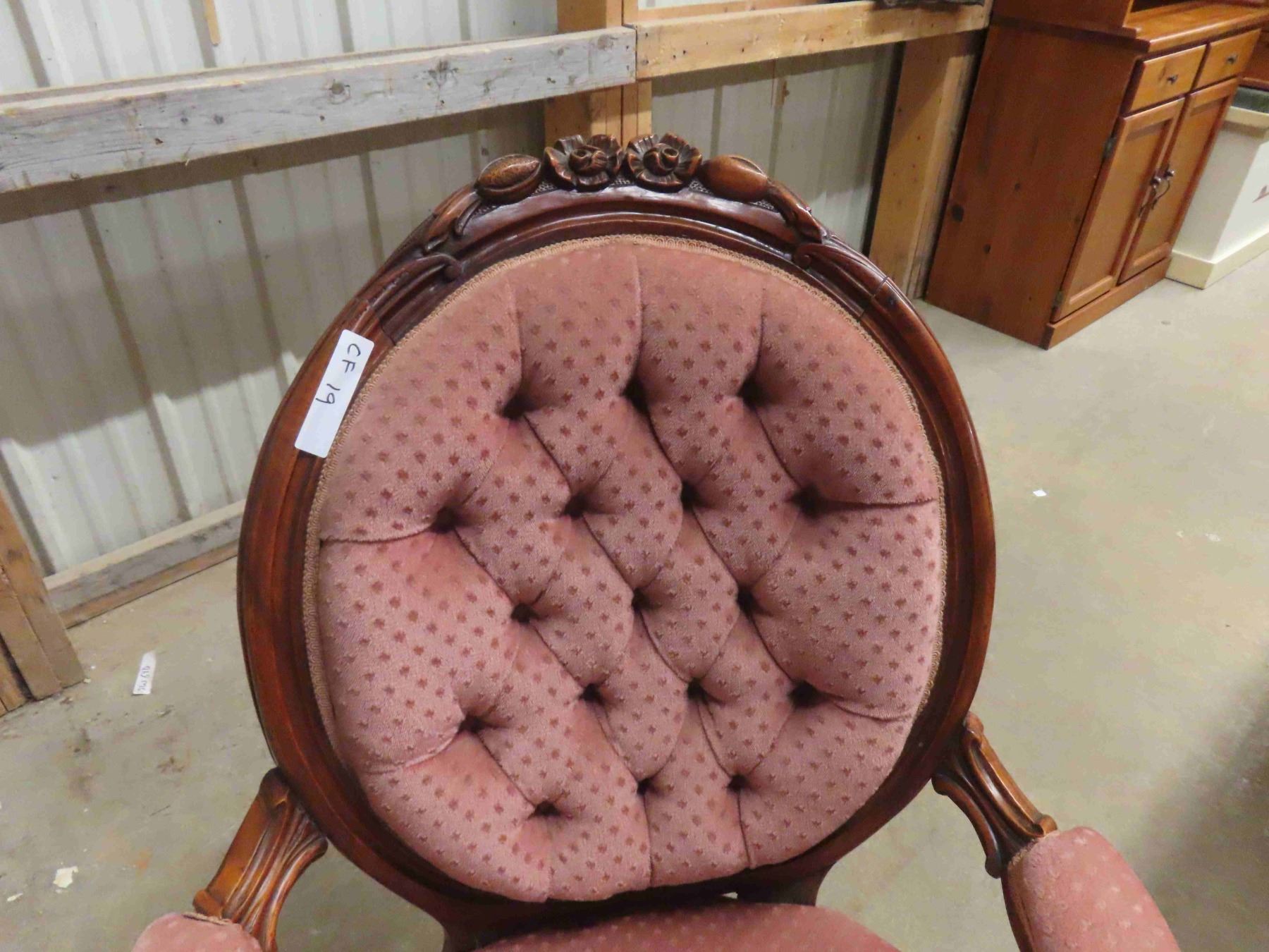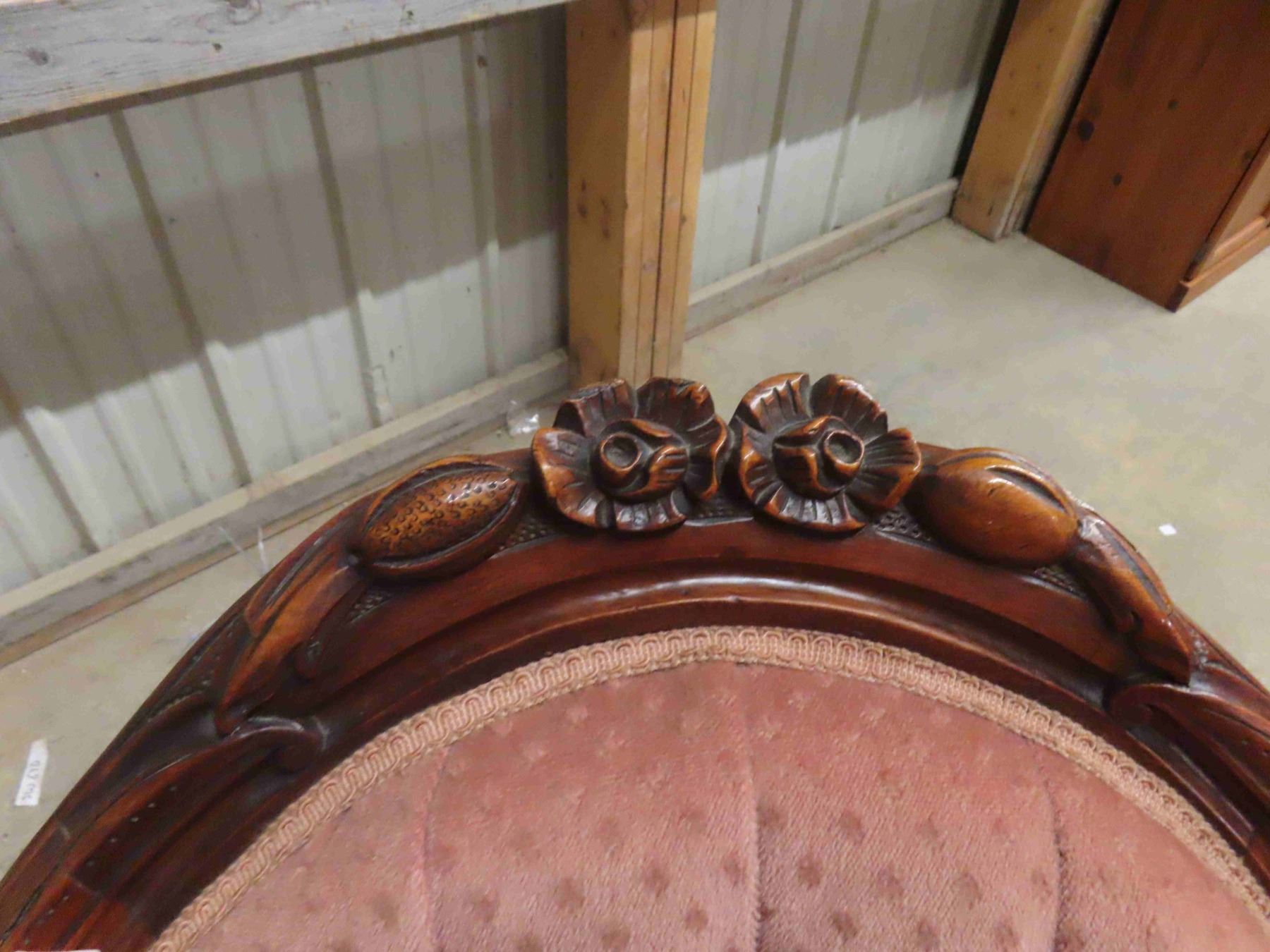 Parlour Chair Button Back, Detailed Wood - Vintage