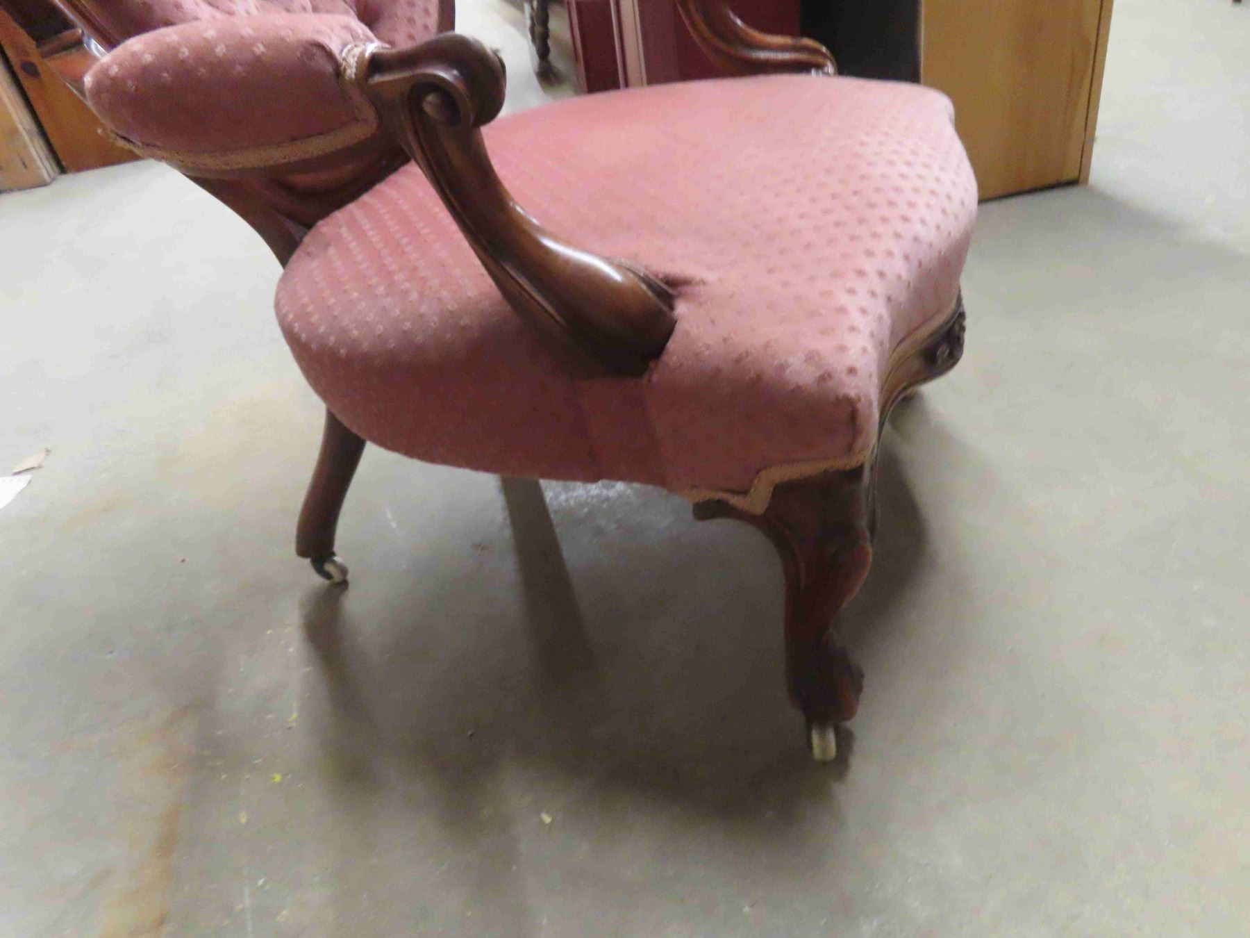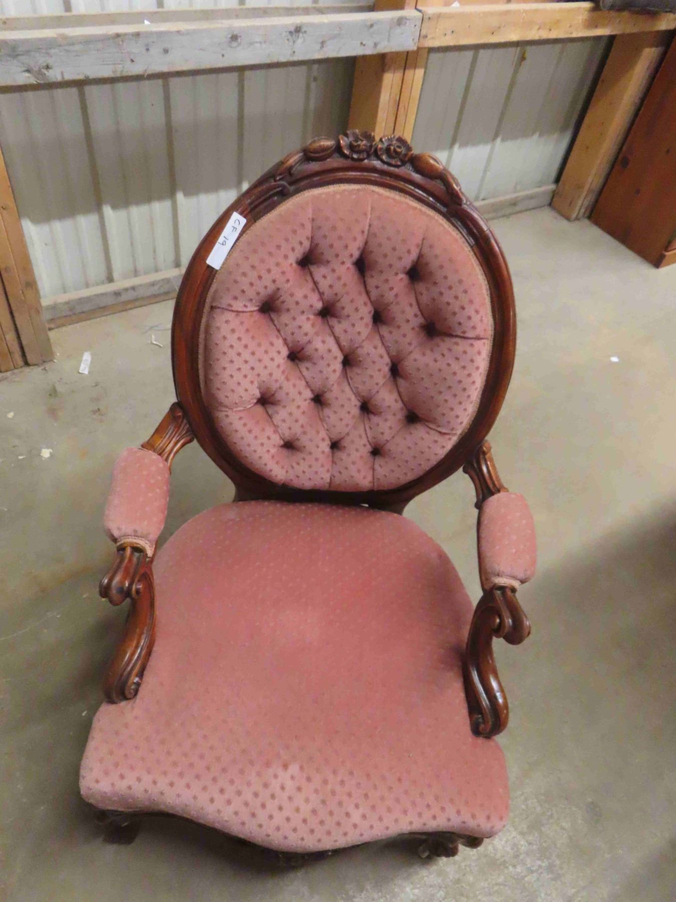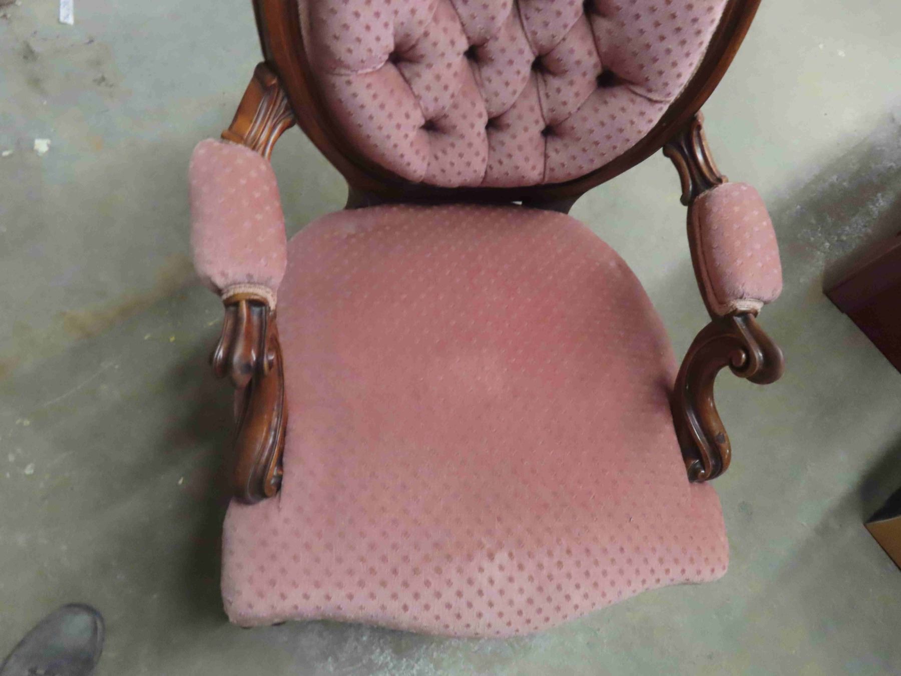 Parlour Chair Button Back, Detailed Wood - Vintage