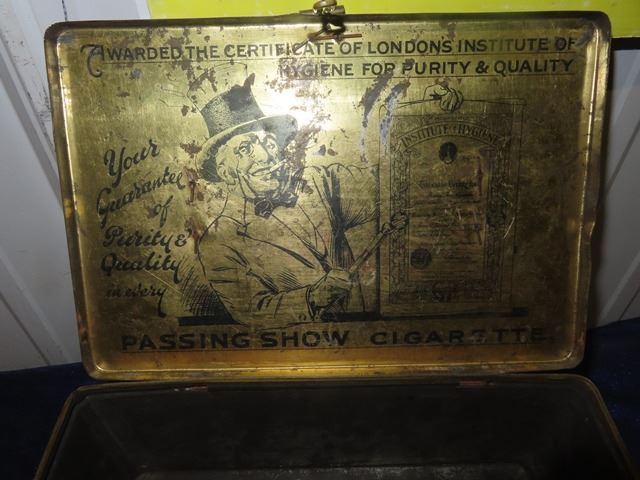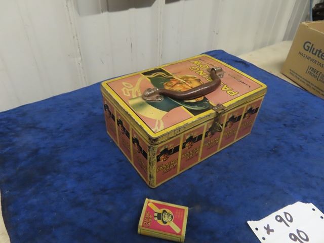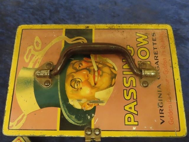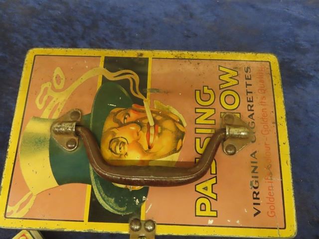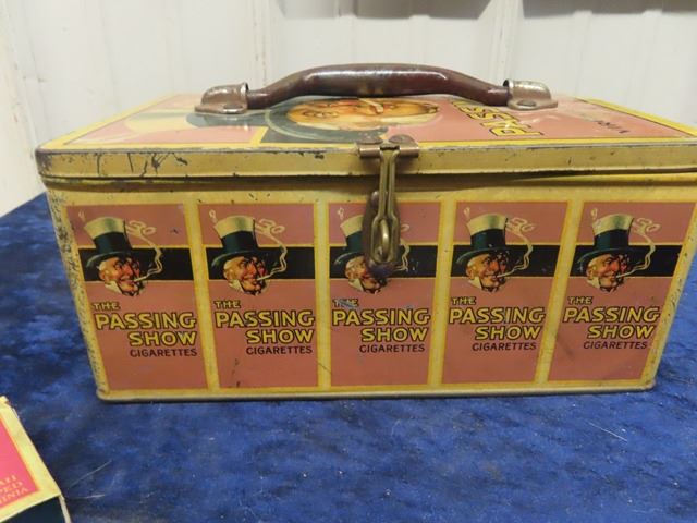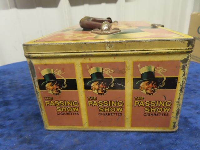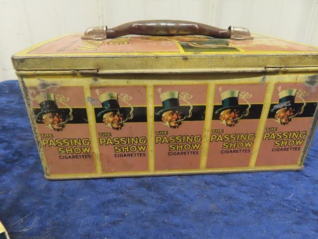 Passing Show Virginian Cigarette Metal Tobacco Tin / Lunch Kit w Metal Match Stick Holder 4" x 8" x 6"