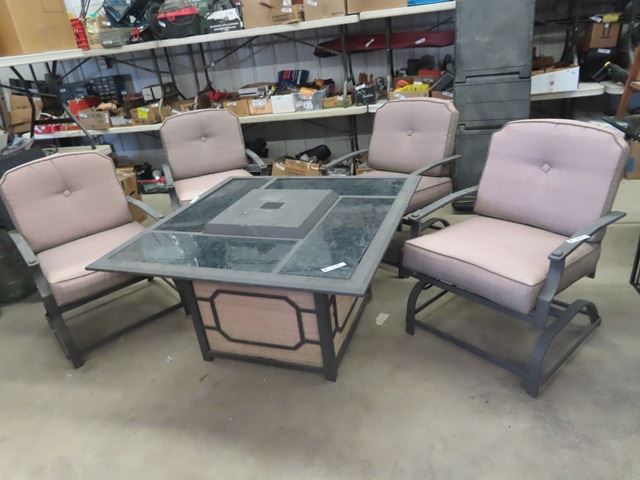 Patio Table w Propane Fire Pit in Center w 4 Rocker Chairs
