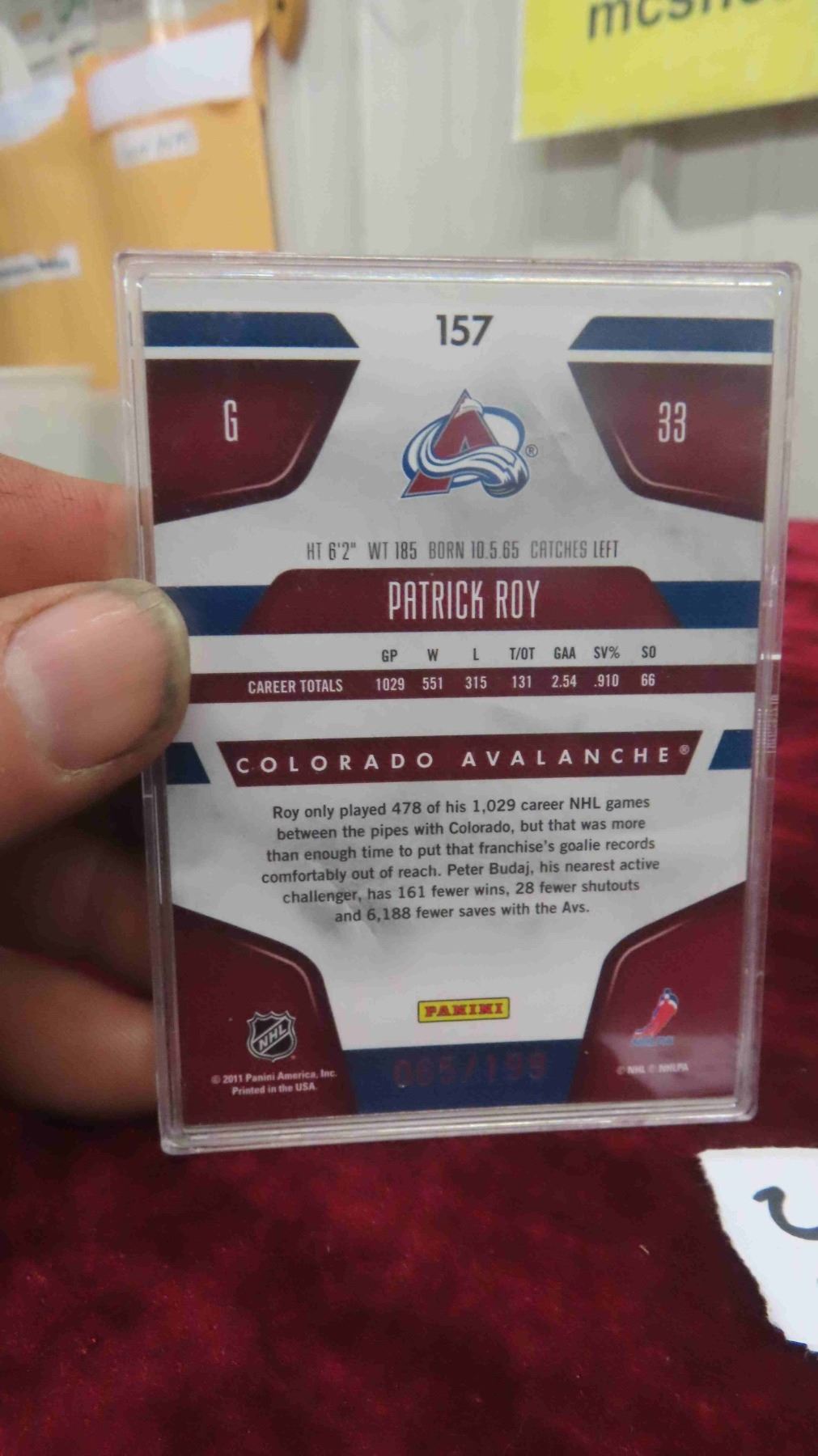 Patrick Roy Immortals Card #65/199 Etc