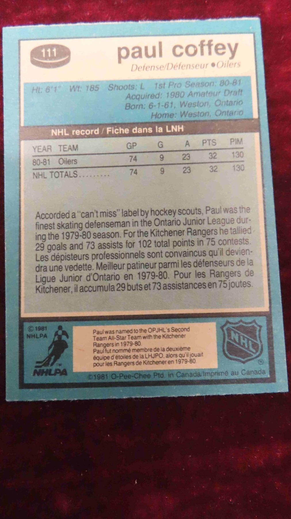 Paul Coffey Rookie Card - Nice