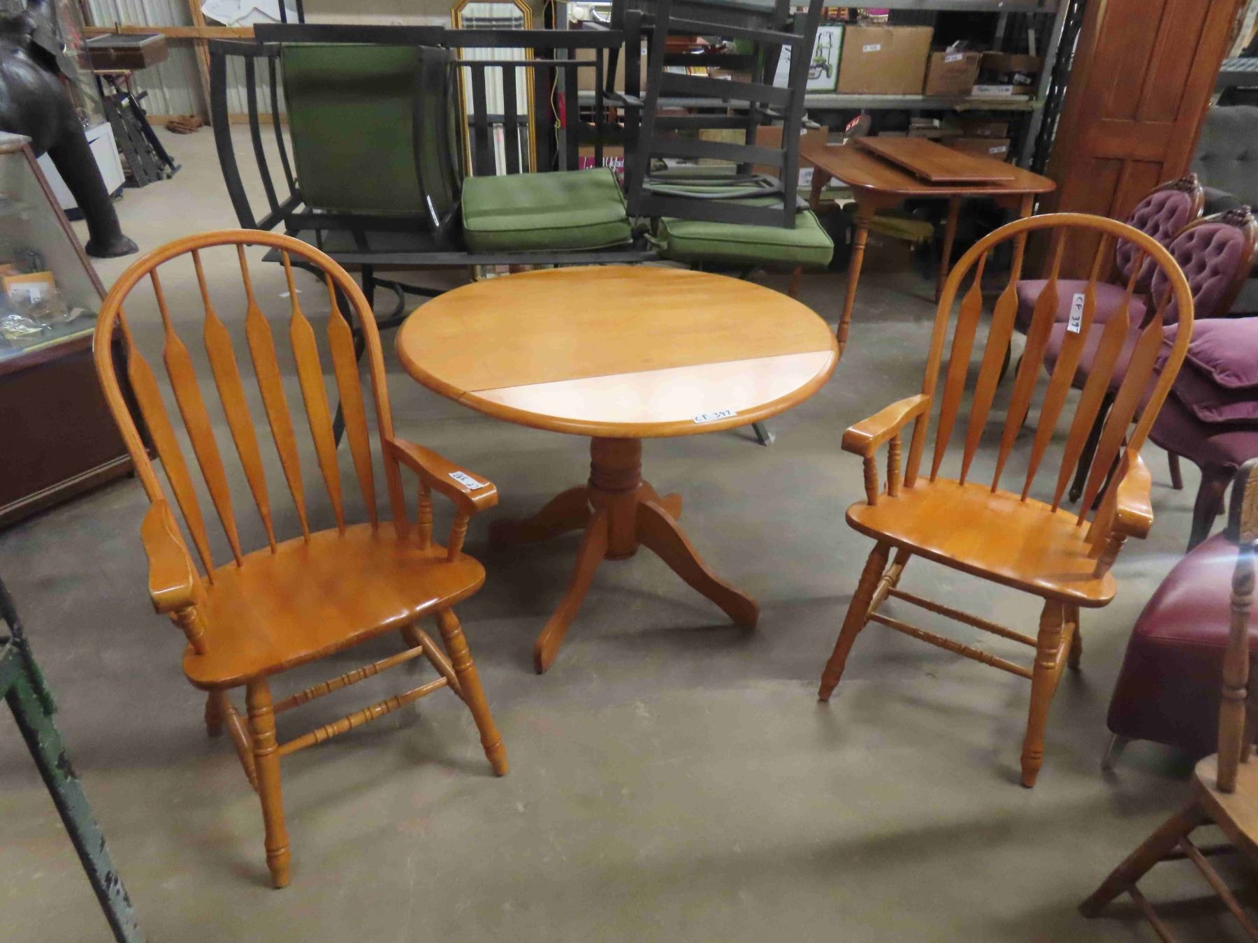 Pedestal Drop Leaf Table & 2 Chairs - Maple or Maple Look 28" Tall 40" Wide when Extended