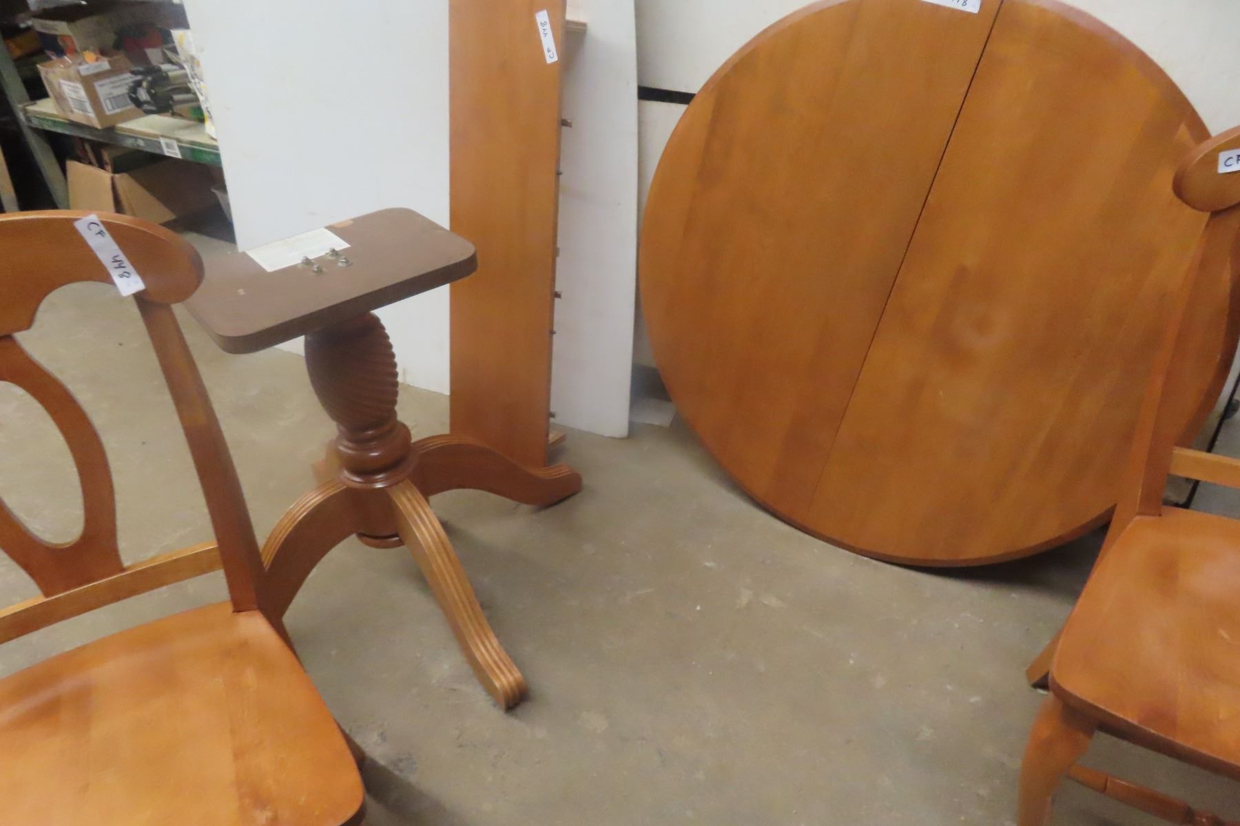 Pedestal Table 30"H 40" Diameter Plus 10" Oak Leaf + 2 Chair
