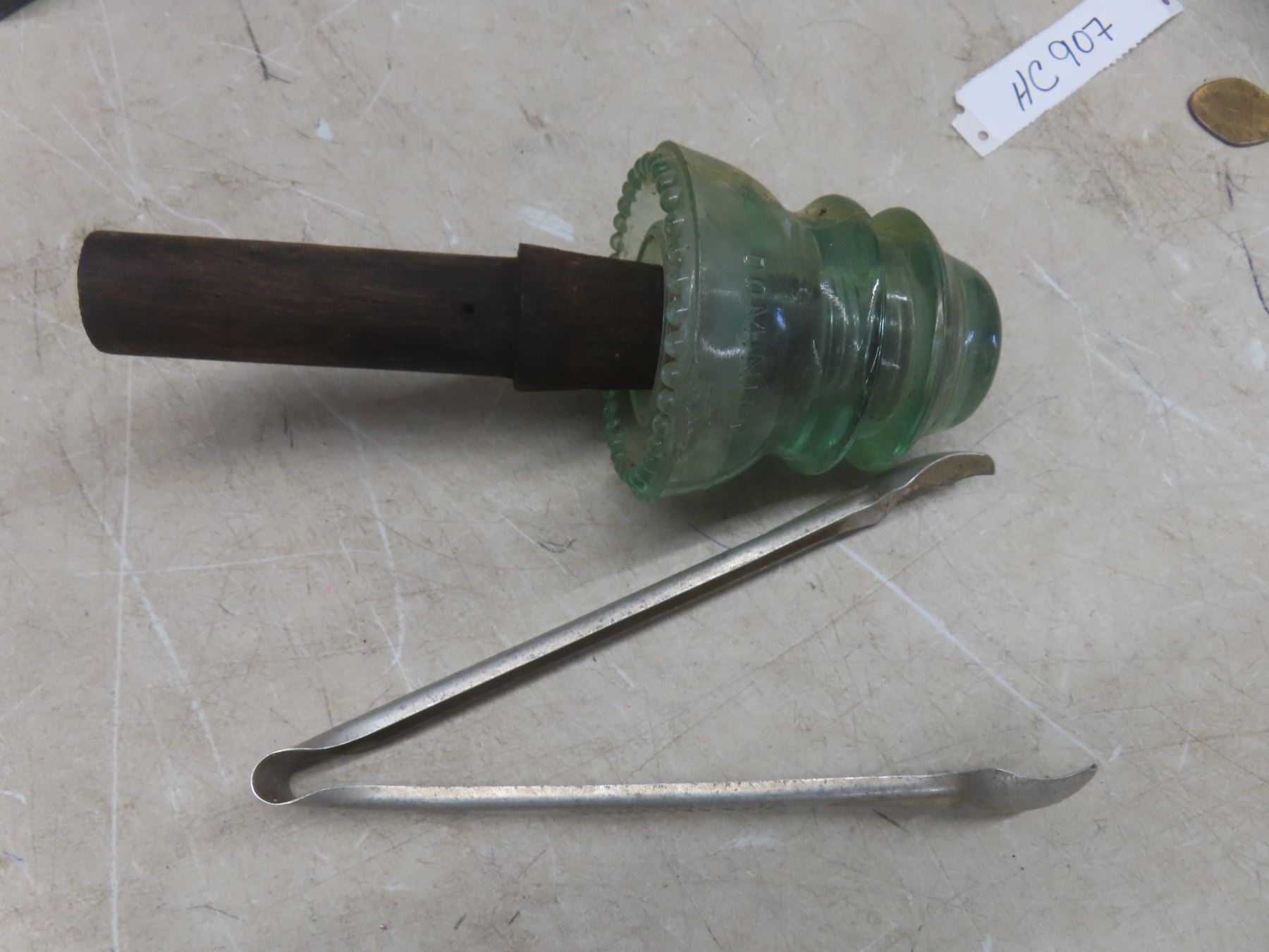 Peetz Reel Time Clock, Oil Lantern, Insulator