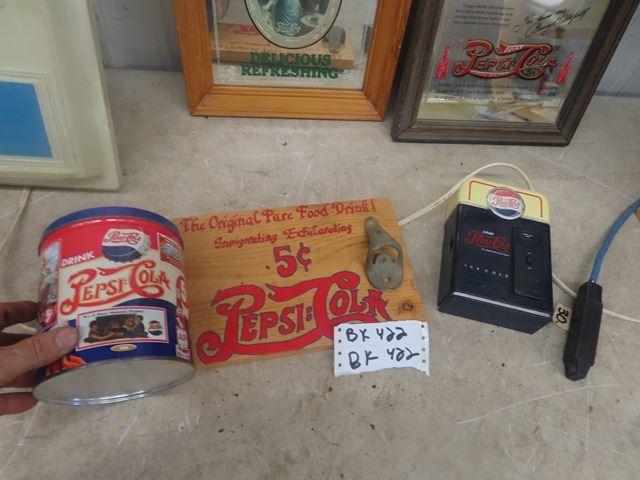 Pepsi Clock, Mirrored Pepsi Advertisement, Pepsi Transistor Radio plus more