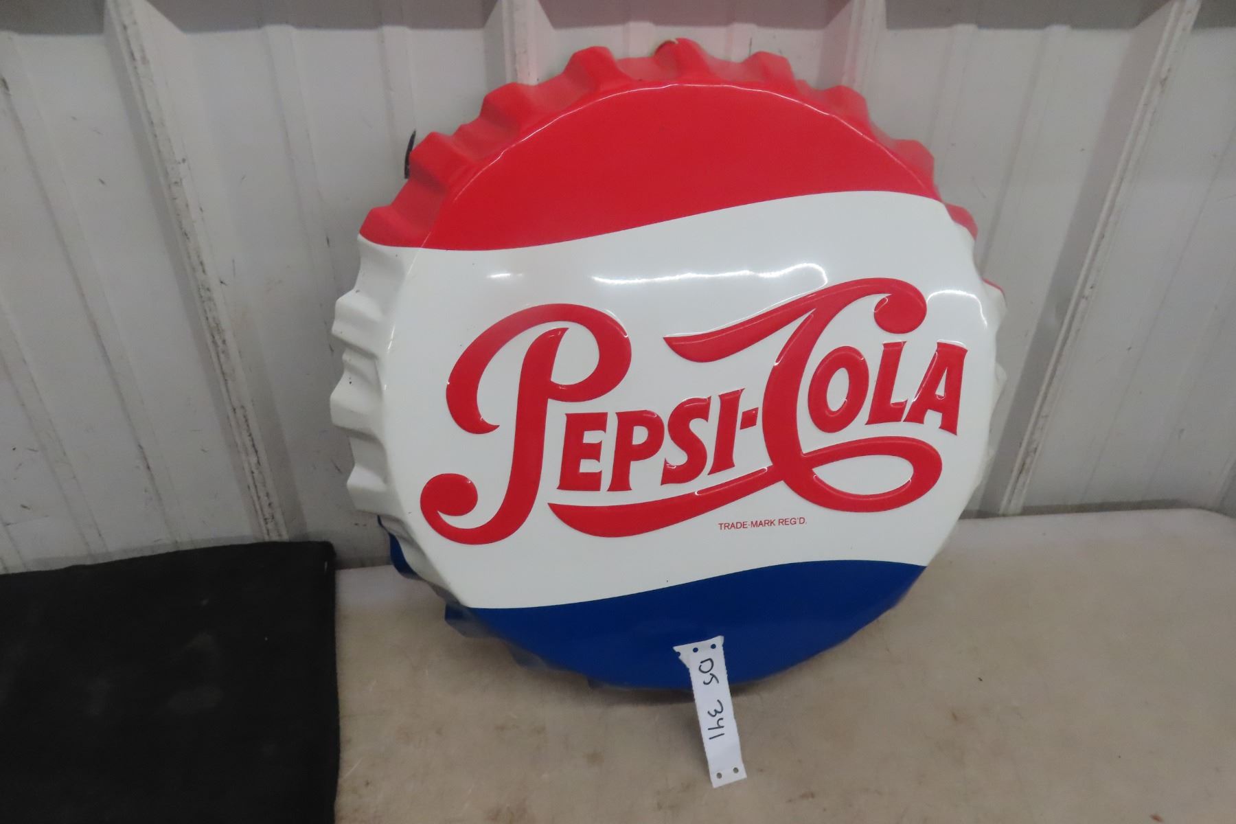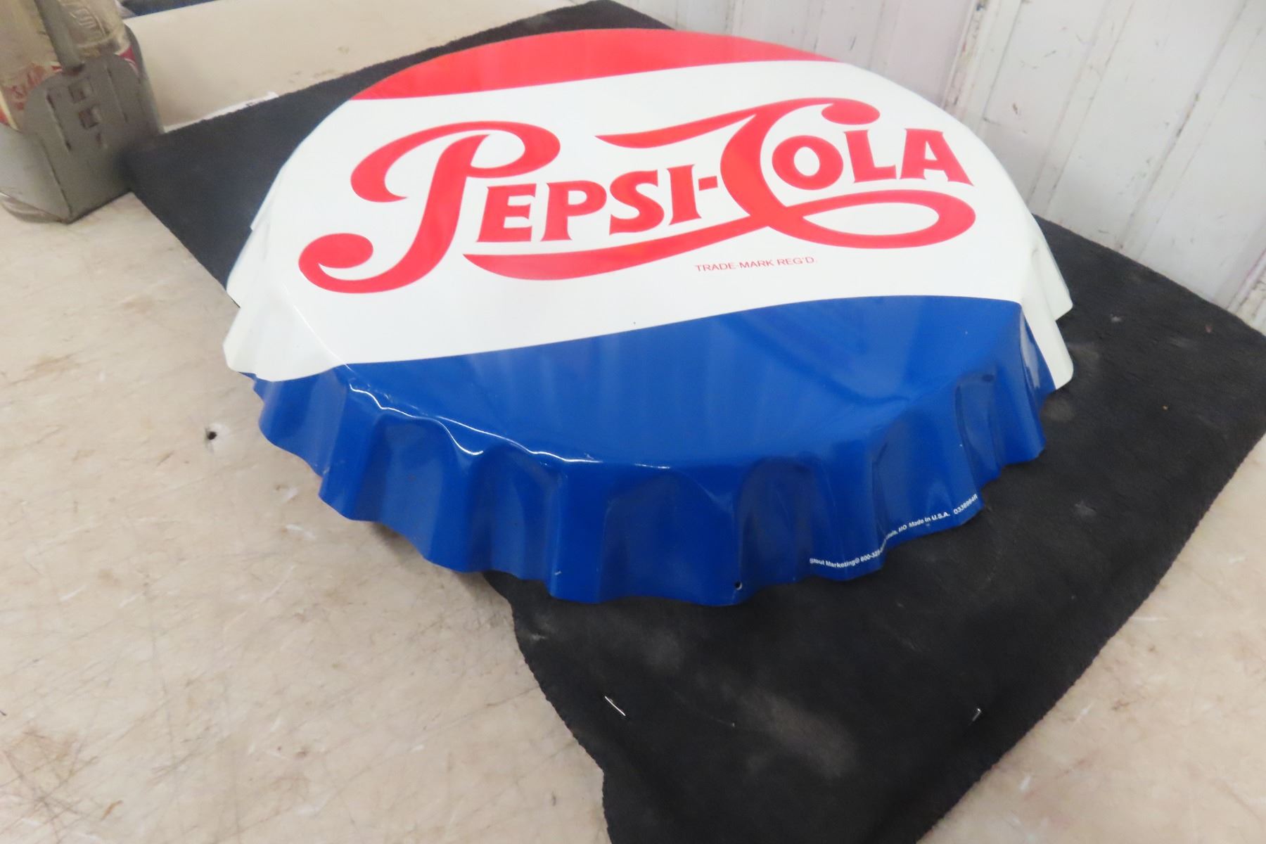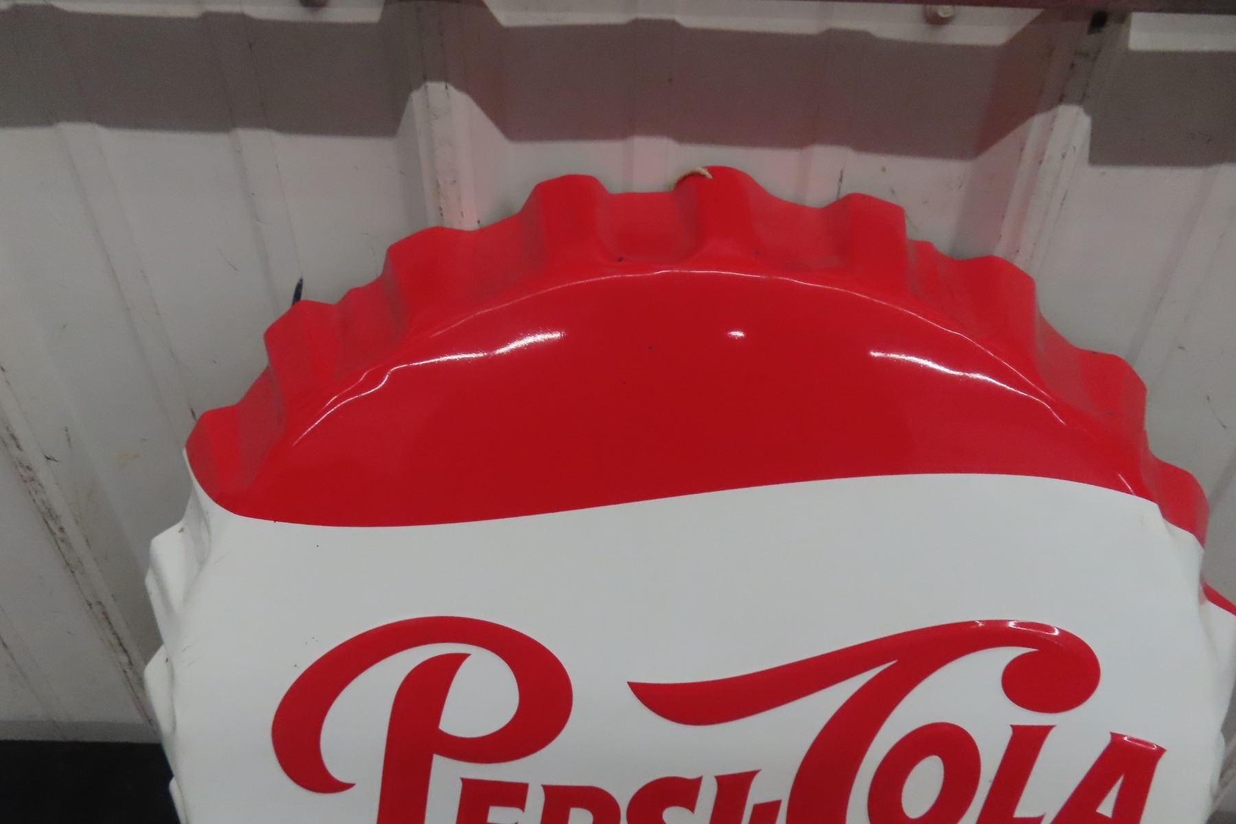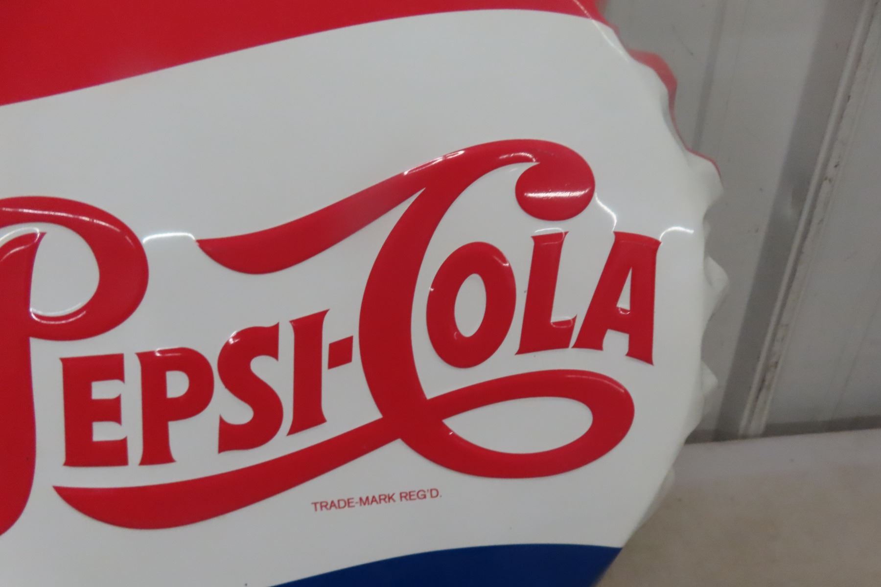 Pepsi Cola Metal Bottle Cap Sign 19'' Diam. (Not Too Old)