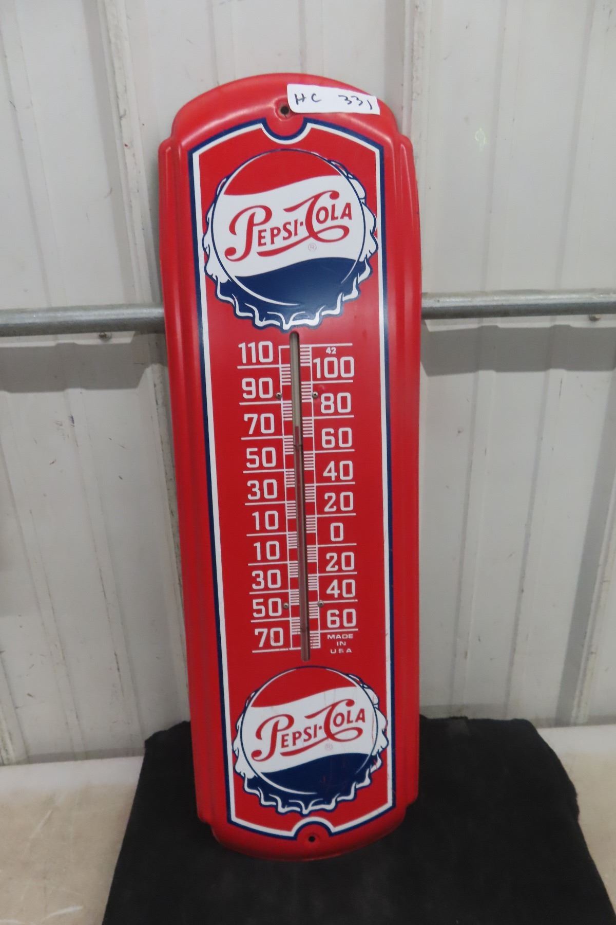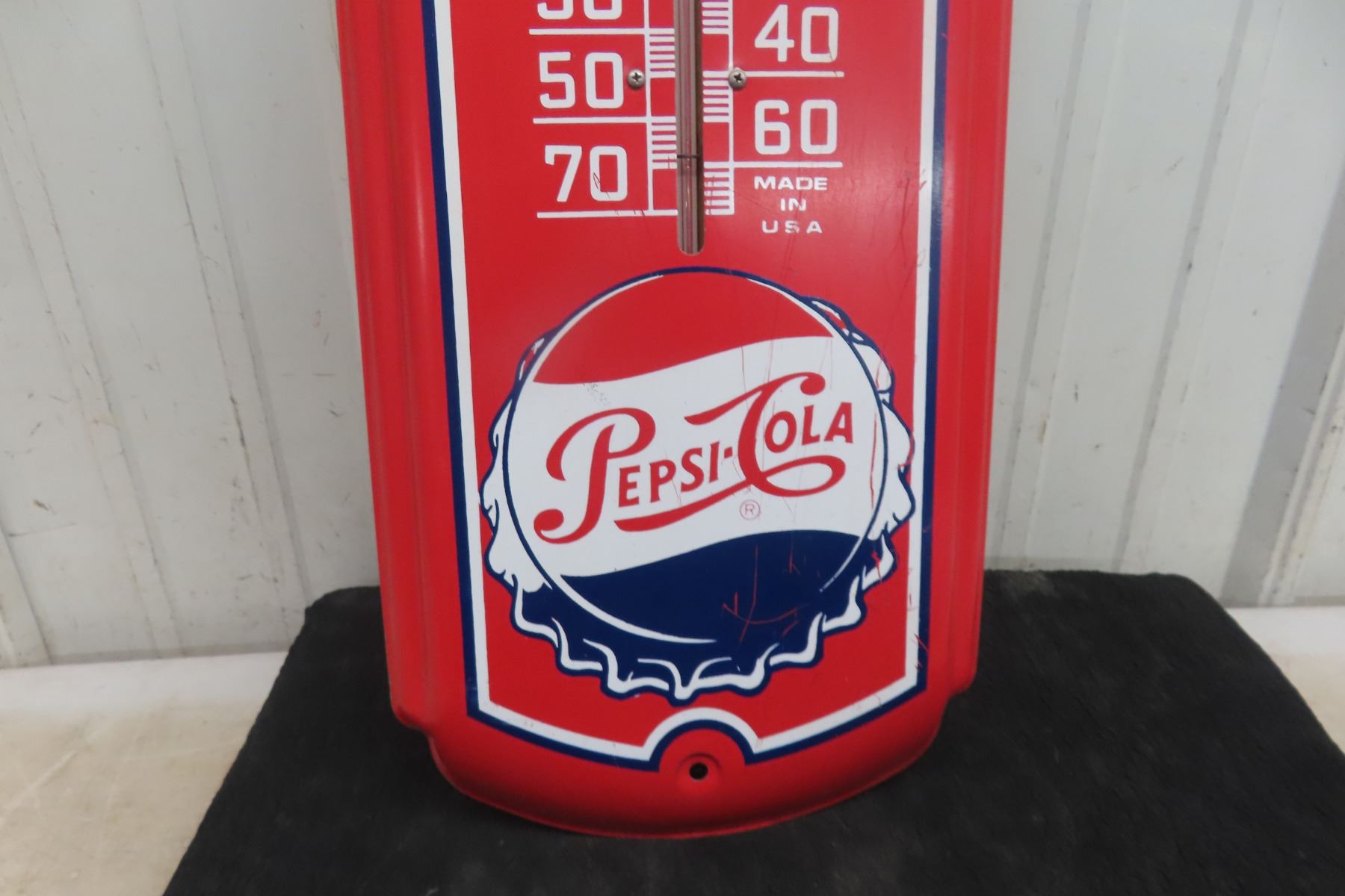Pepsi Cola Metal Thermometer with Bulb 8 1/2'' x 27'' Not Too Old.
