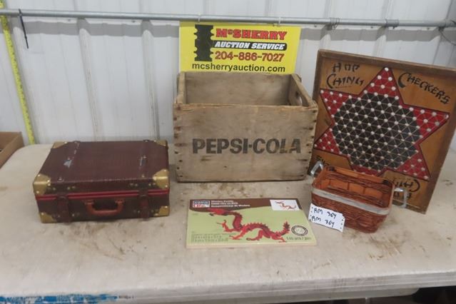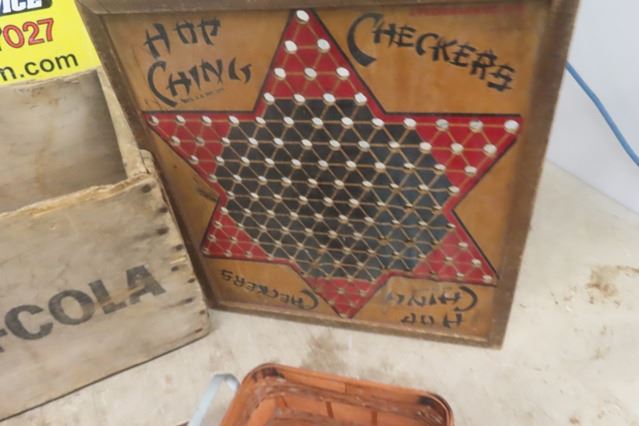 Pepsi Crate, Leather Carrier, Vintage Chinese Checker Board, Wooden Dragon Puzzle