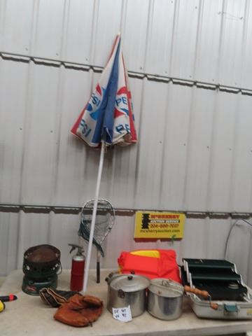 Pepsi Patio Umbrella, Coleman Heater, Tackle Box, Vintave Baseball Glove Plus More!