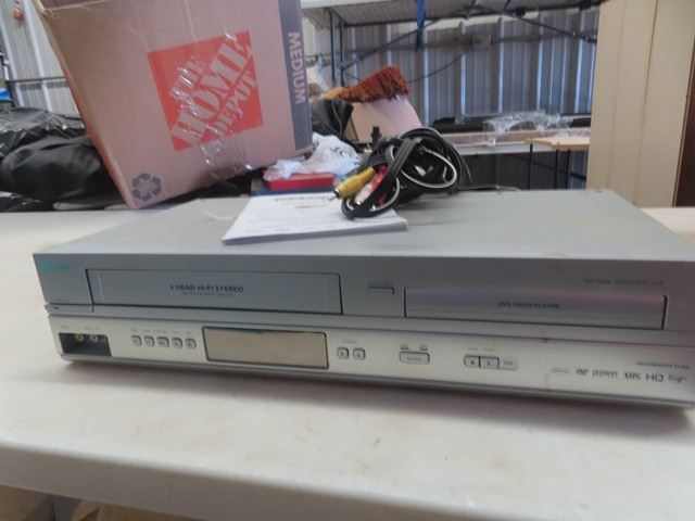 Phillips VCR/DVD Combo, Large Box of CDs, DVDs & VHS Entertainment