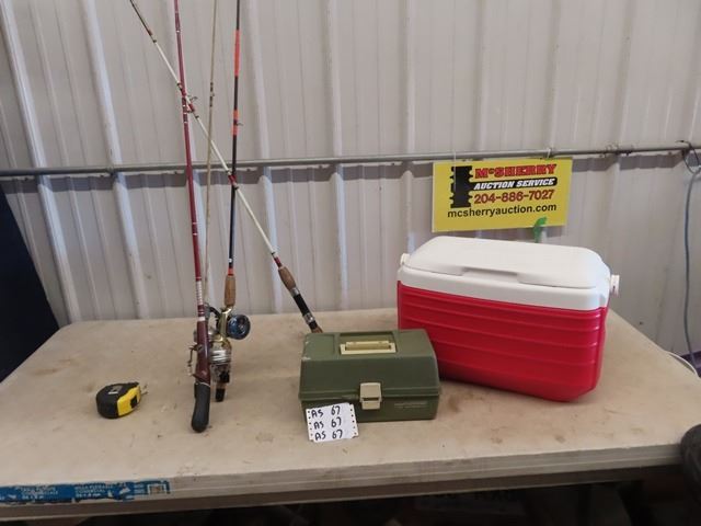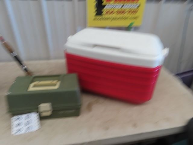 Picnic Cooler Fishing Tackle Box, 4 Fishing Rods & 3 Reels