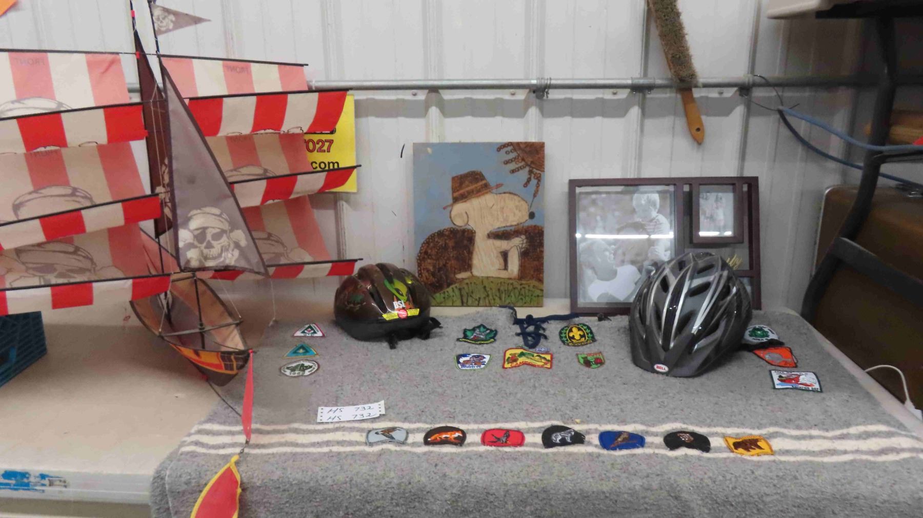 Picture Frame, Neat Kite, Poncho with Boy scout Badges & 2 Bike Helmets