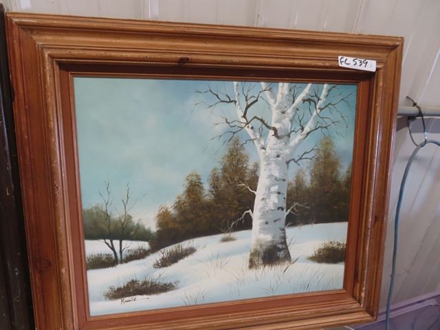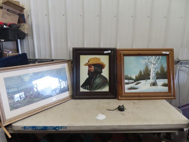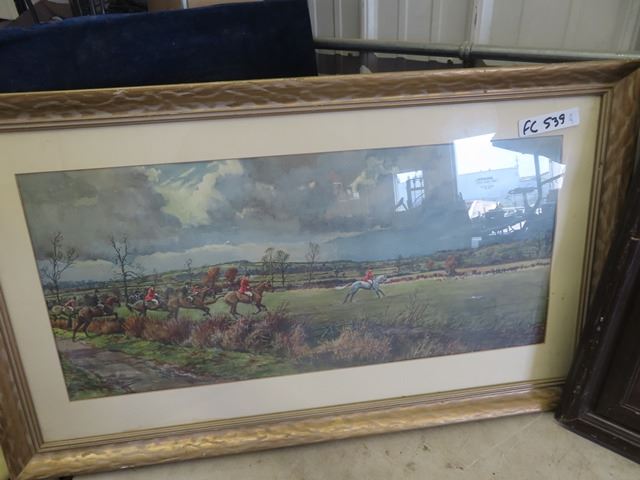 Pictures & Paintings 1) Fox Hunt Print 36" X 21" W Amadias Painting Canvas Man 27 X 27, & Krantz Painting Scenery 28 x 32