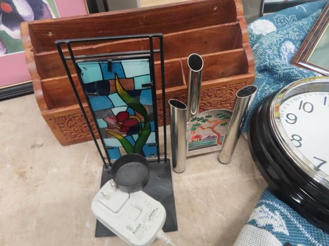 Pictures, Stained Glass Candle Holder, Clock, Desk Letter Organizer plus more
