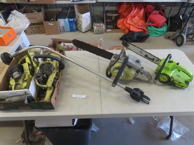 Pioneer 1200 & Poulan Super 250A Chainsaws with Pioneer Chainsaw Parts & Sears Weed Trimmer Attachment