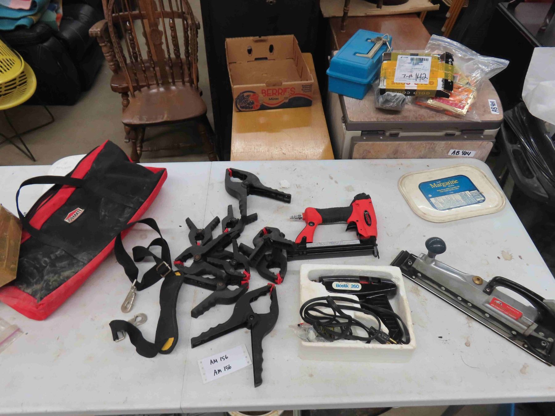 Pitbull Air Straight Ling Sander, Air Nailer, Electric Glue Gun, Clamps, Jobmate Bag