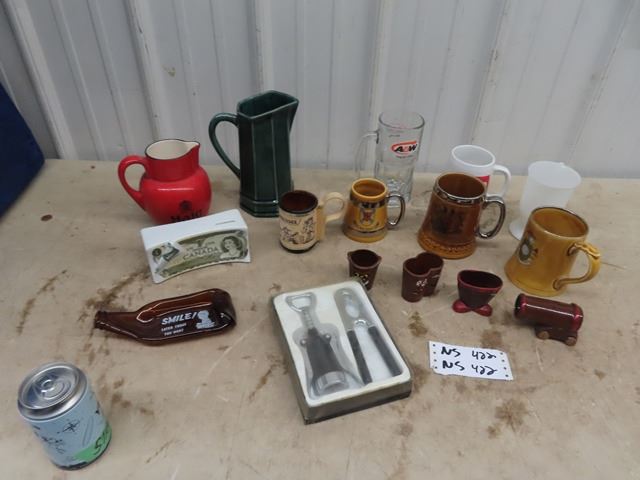 Pitcher, Beer Mugs, A & W , Dollar Bill Bank, Bottle Opener, Shot Glasses Plus!