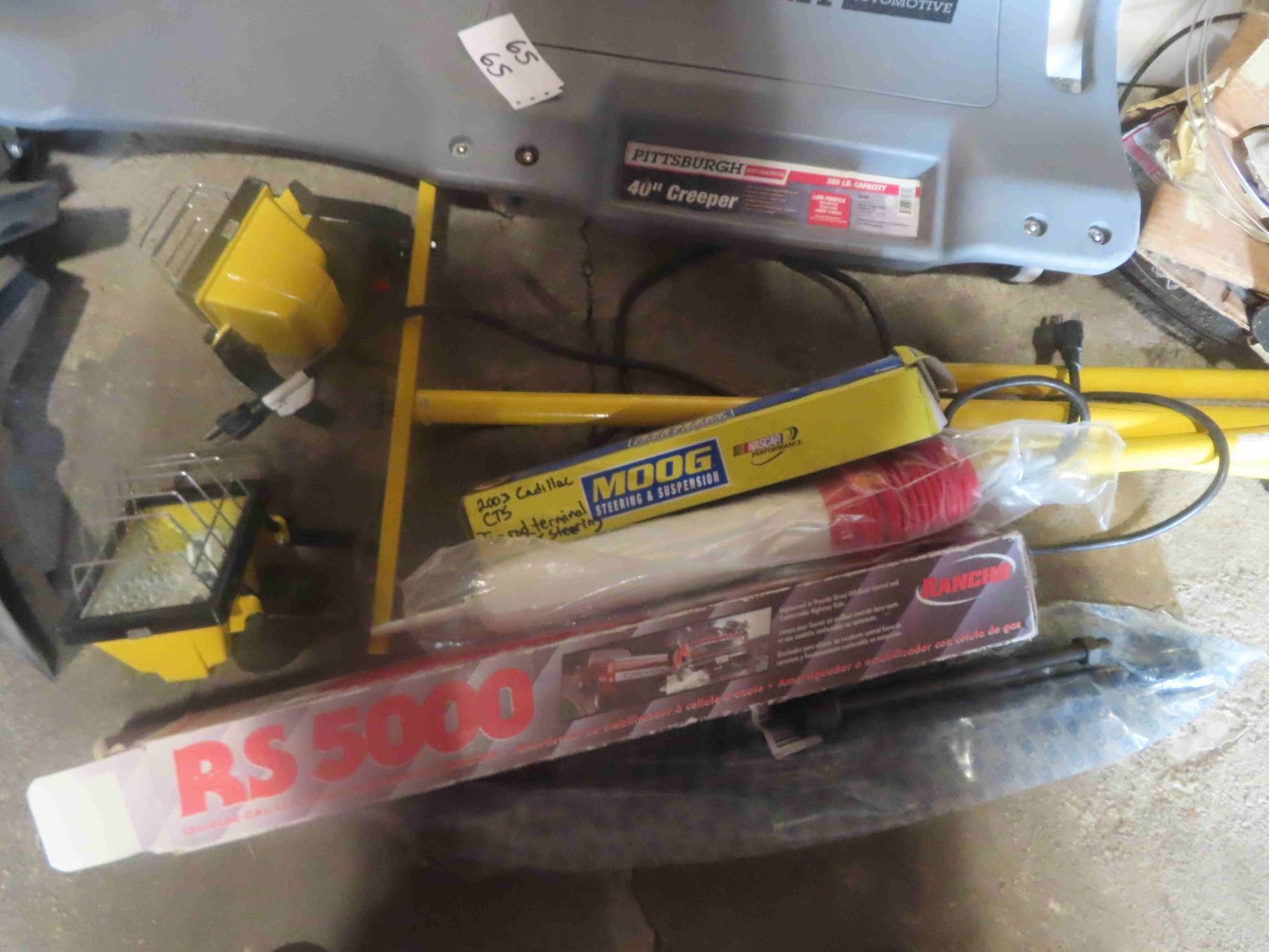 Pittsburgh 40'' Creeper, Halogen Light on Stand, Mud Flaps, Throttle Cable, Reflecting Flare, Roll of Poly