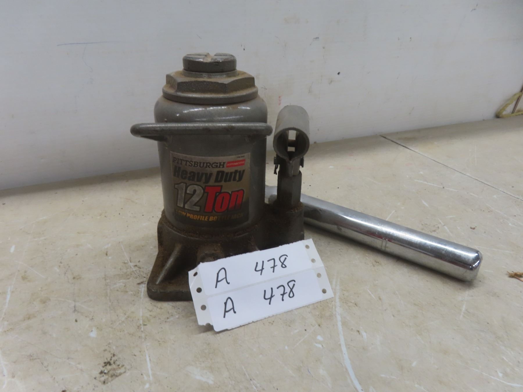 Pittsburgh HD 12-Ton Hydraulic Bottle Jack.