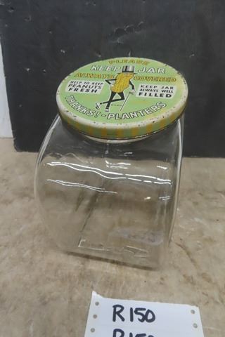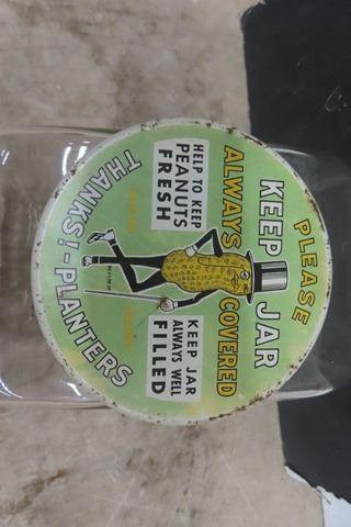 Planter's Counter Peanut Display Jar Embossed with Tin Lid