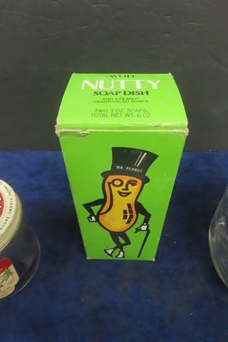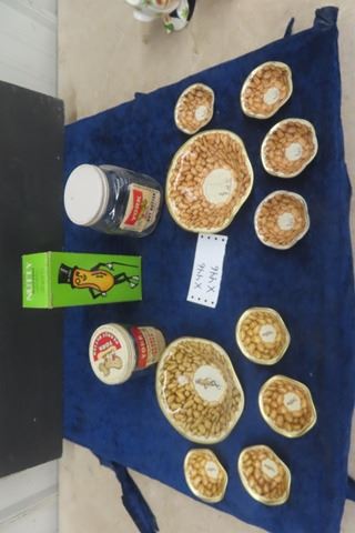 Planter's Peanut Collectibles 1939 Worlds Fair Snack Set, Soap Dish, Another Snack Set , 2 York Peanut Butter Jars