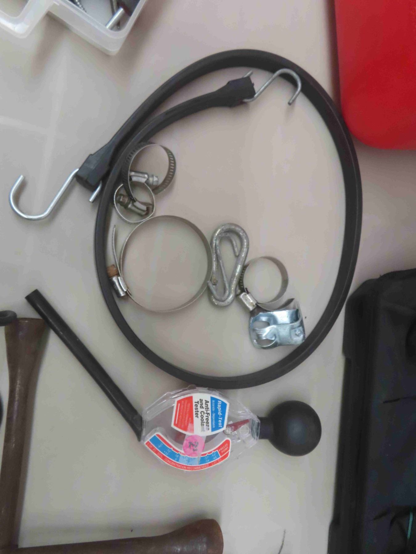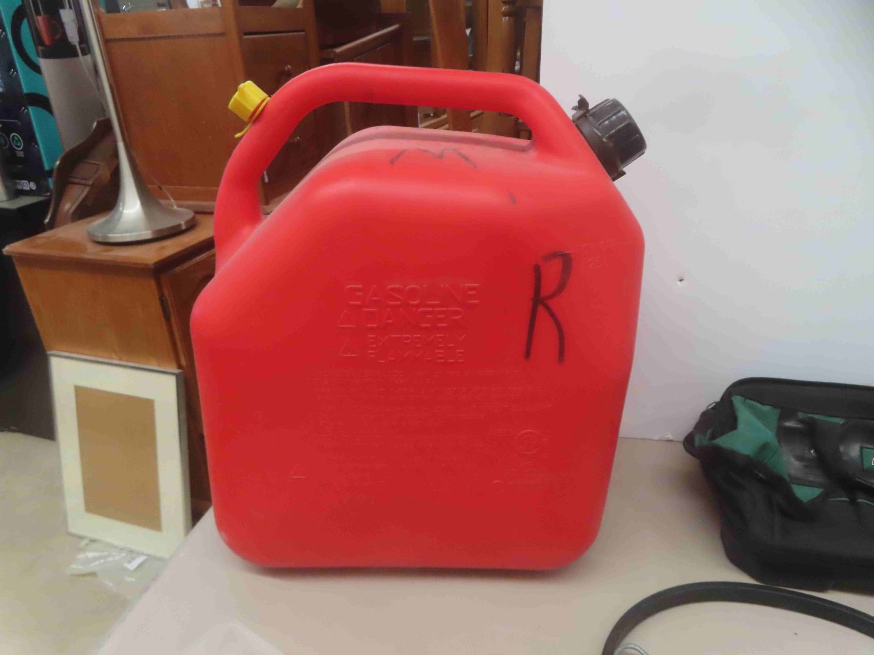 Plastic 5 Gallon Gas Container, Hack Saw, Screwdrivers, Clamp, Hammer &