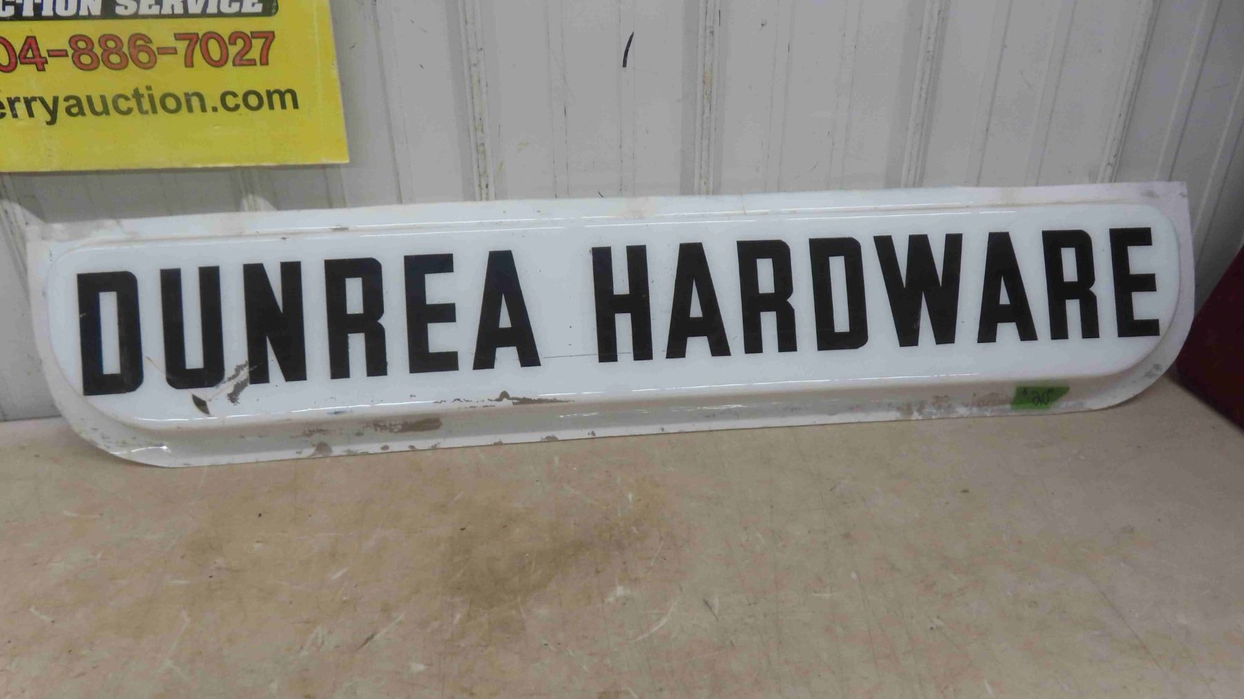 Plastic Light Cover Sign 'Dunrea Hardware' 48'' x 10'' - Has Damage at Lower Corner, See