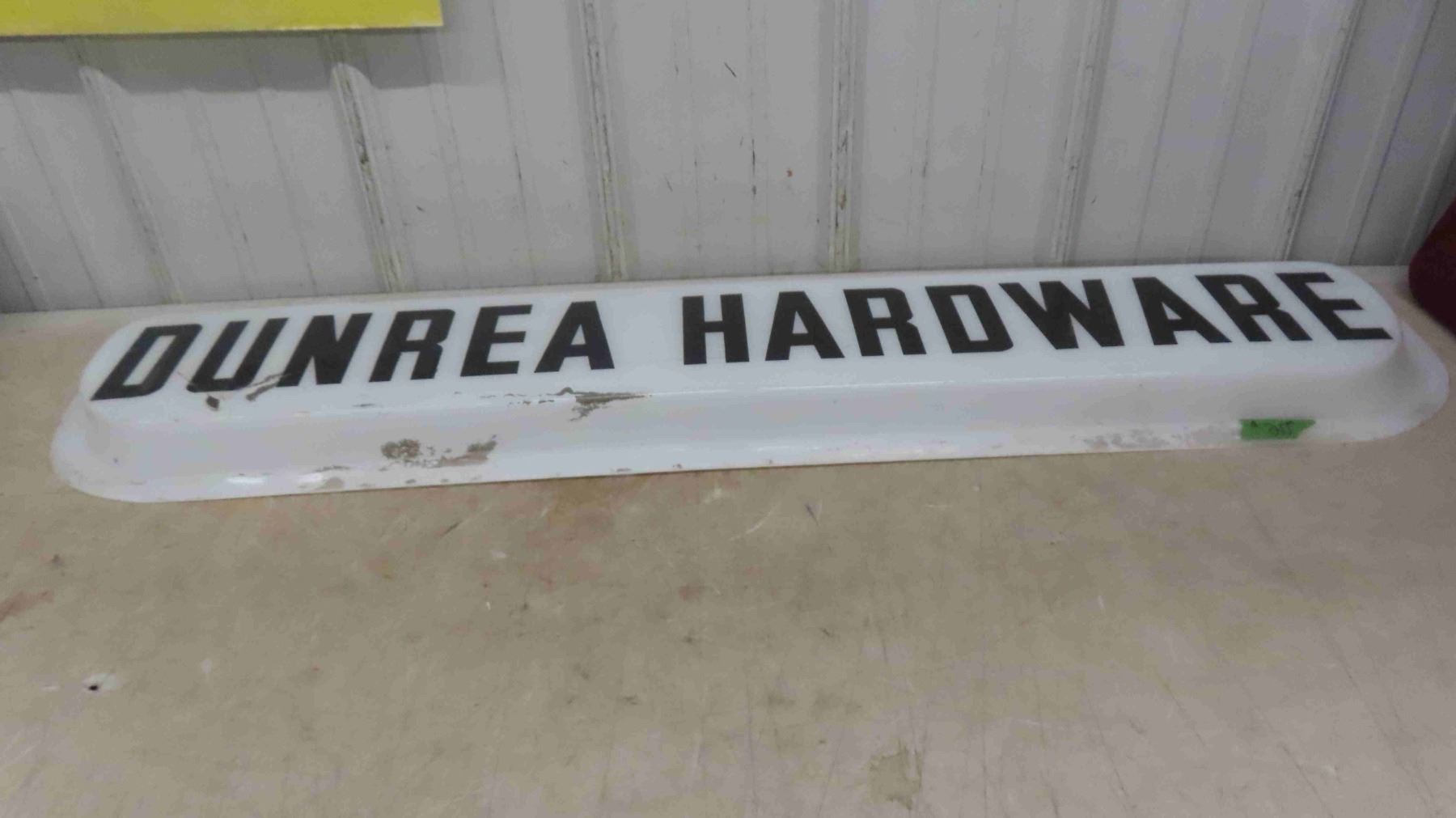Plastic Light Cover Sign 'Dunrea Hardware' 48'' x 10'' - Has Damage at Lower Corner, See Photos