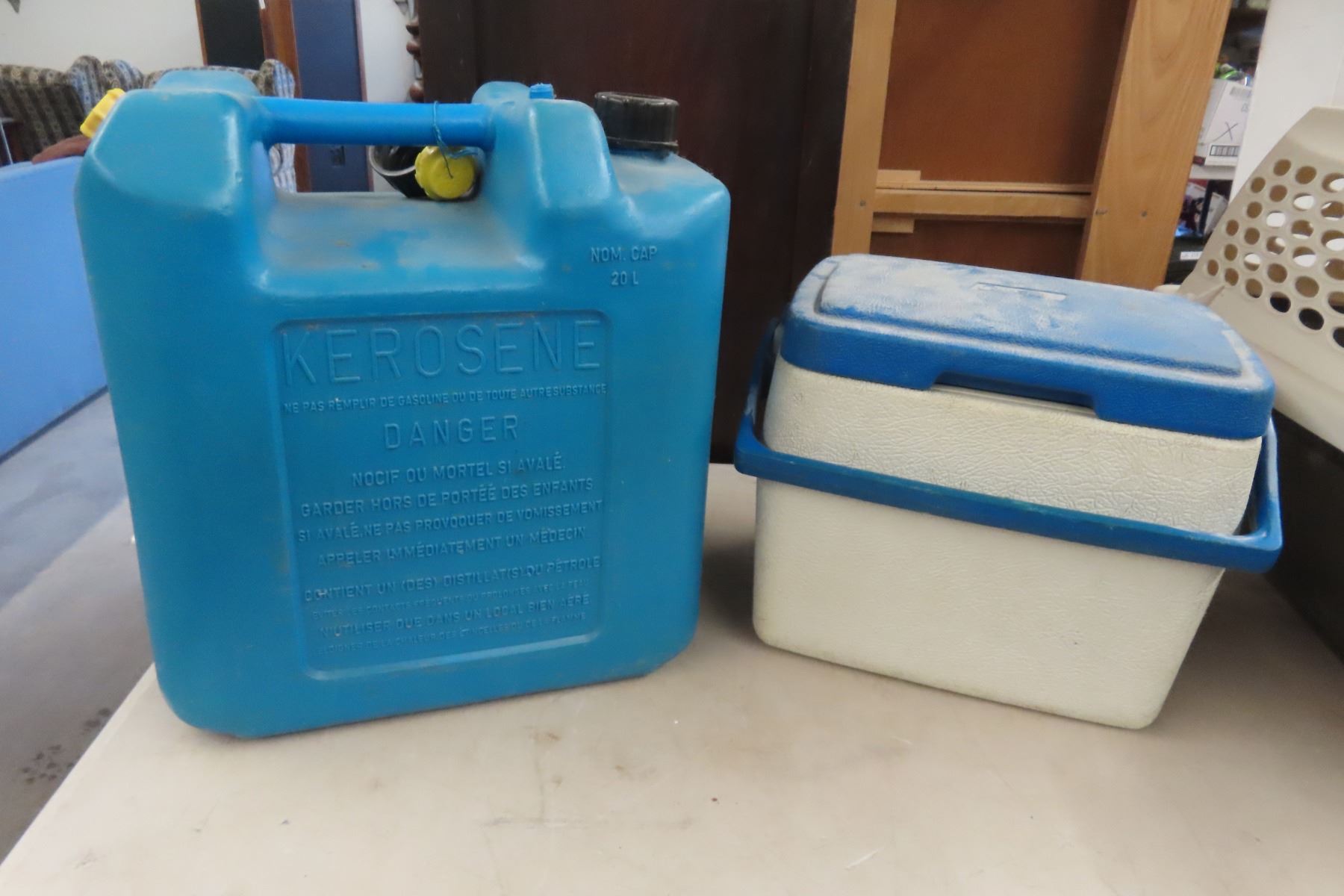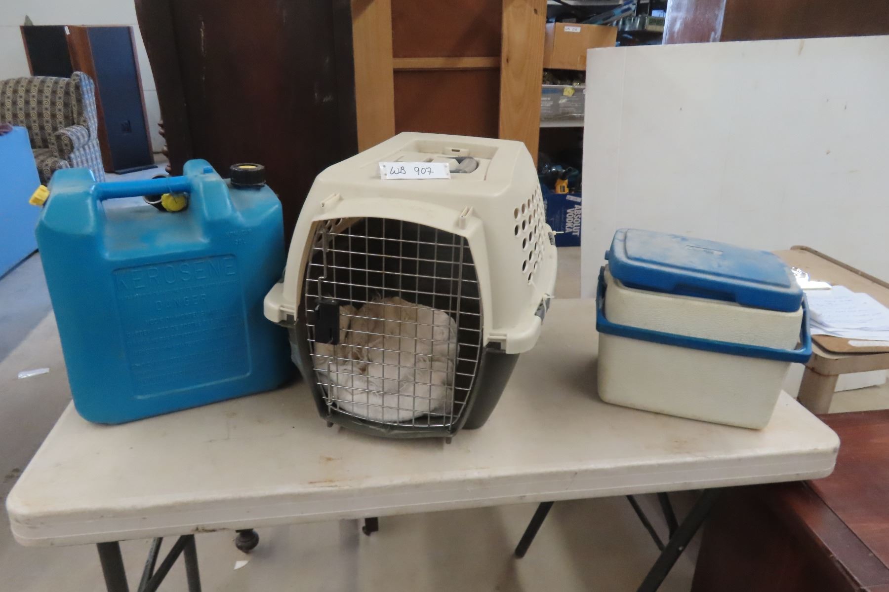 Plastic Pet Carriers, Kerosene 20L Container and Coleman Cooler Damage on Pet Carrier Bottom Corner