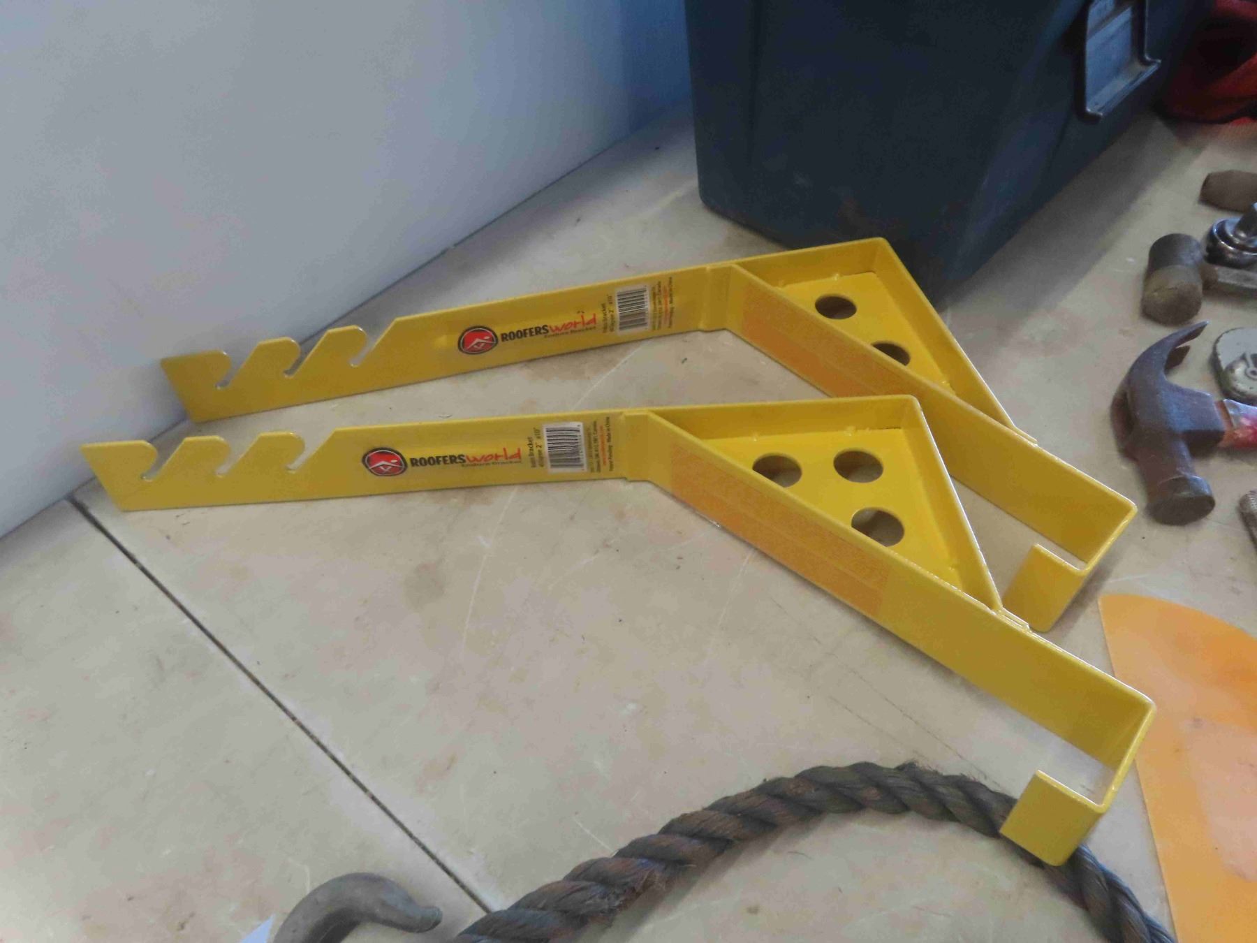 Plastic Tool Box with Tools: 1/2'' Ratchet, Hammer, Endura Brackets, Trowel & More