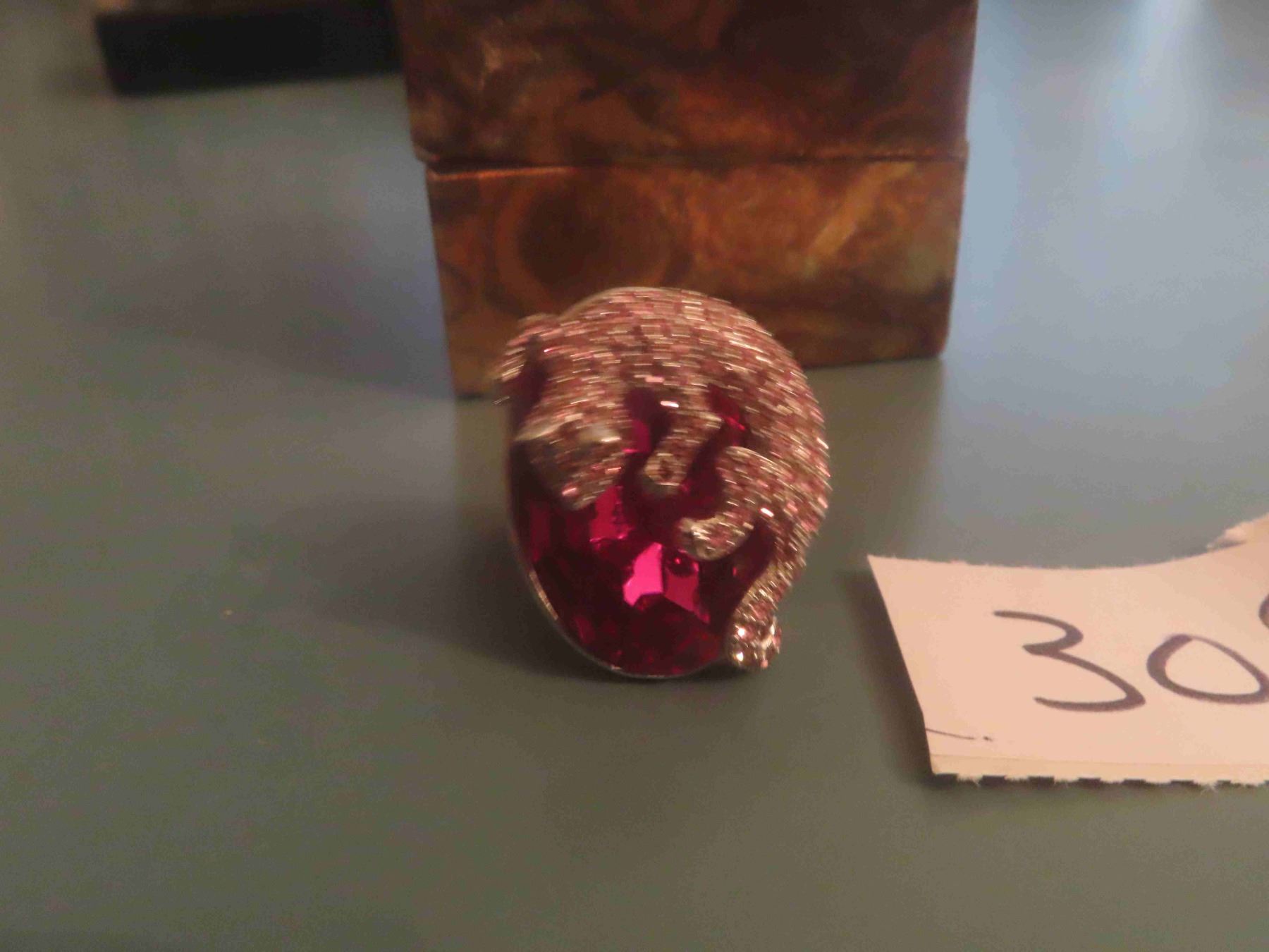 Platium Plate Rose Crystal Cougar Ring Size 5
