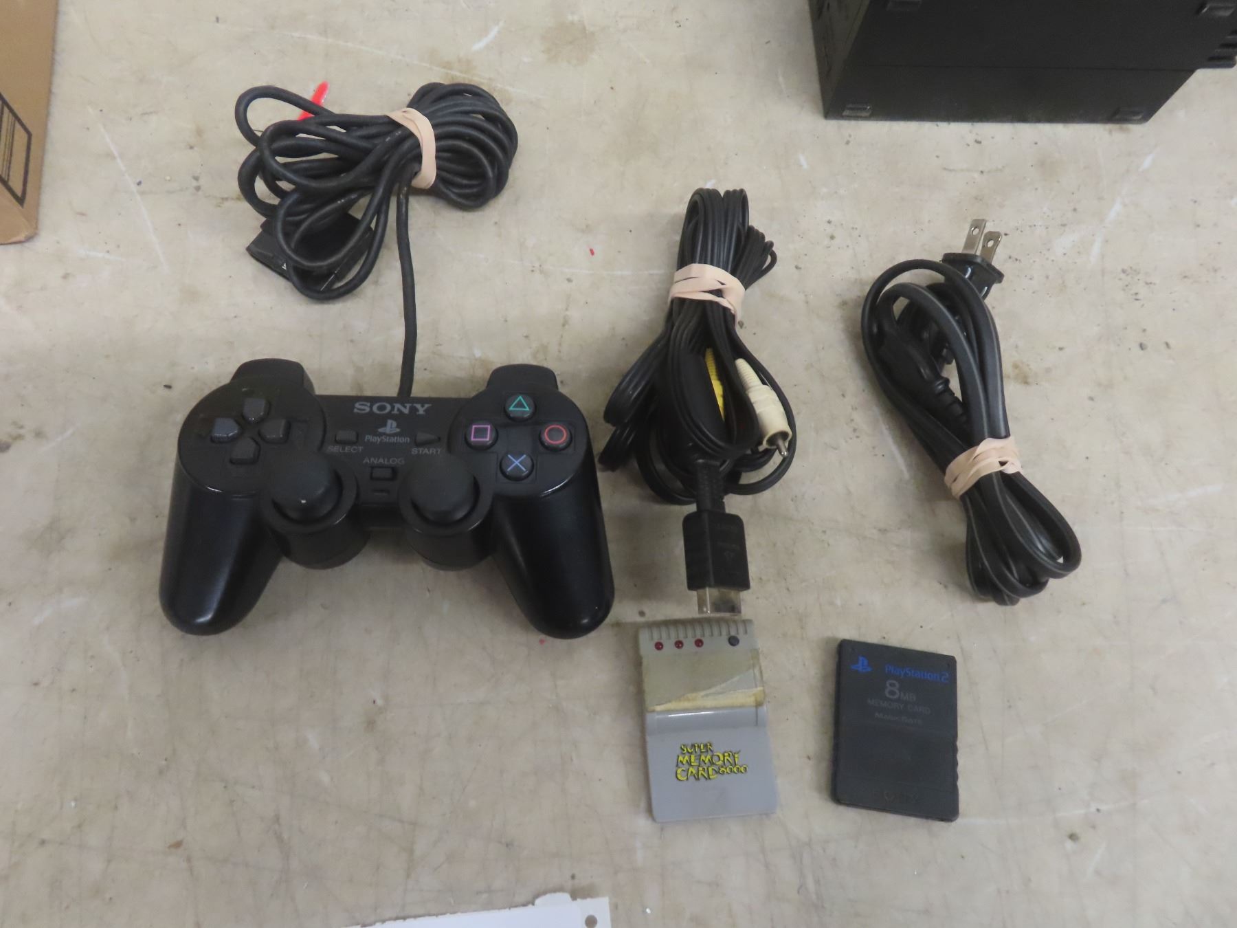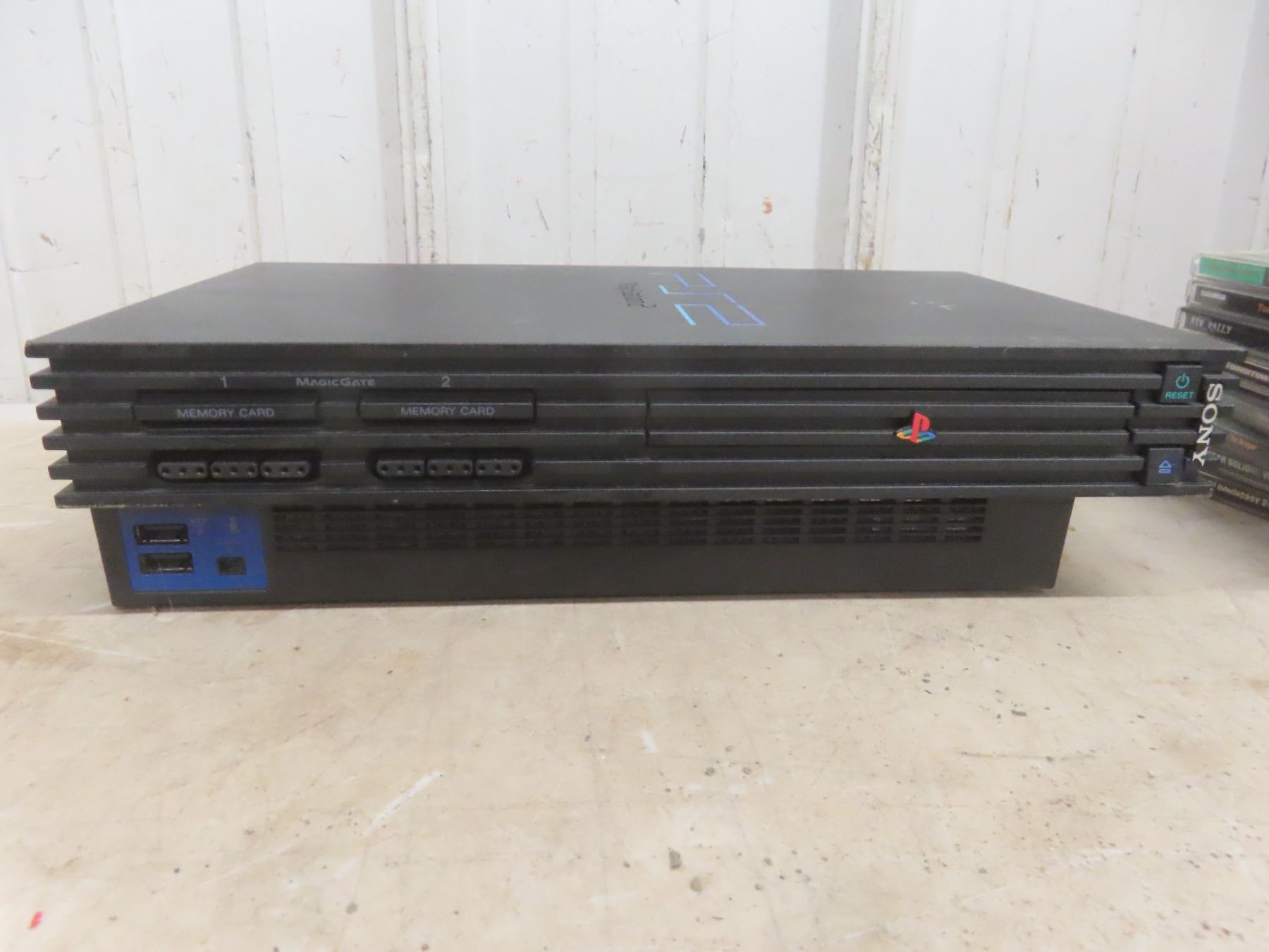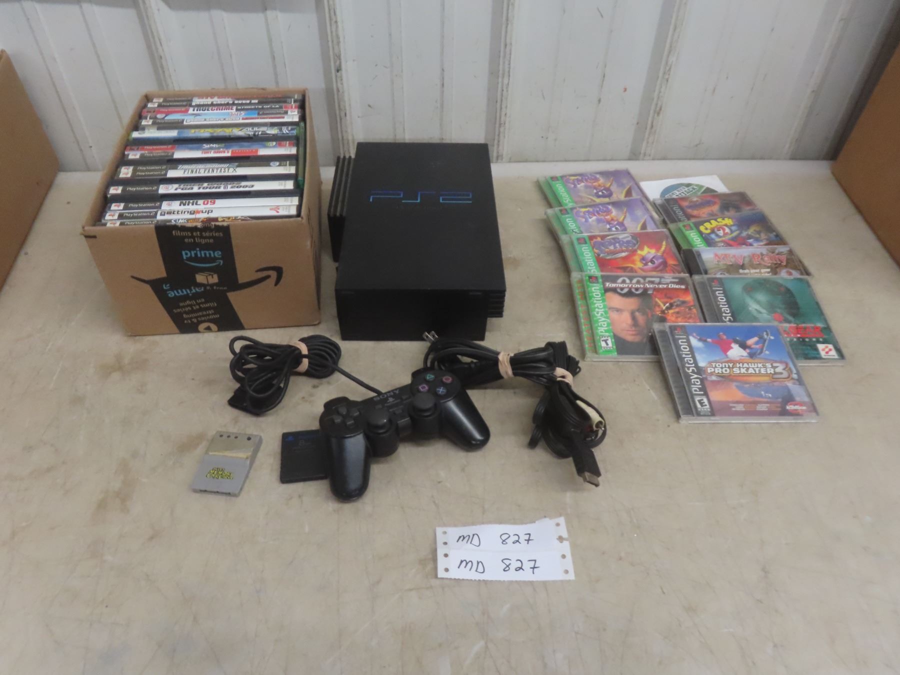 PlayStation 2 Console With Controller, 2 Memory Cards, And Assorted Games.