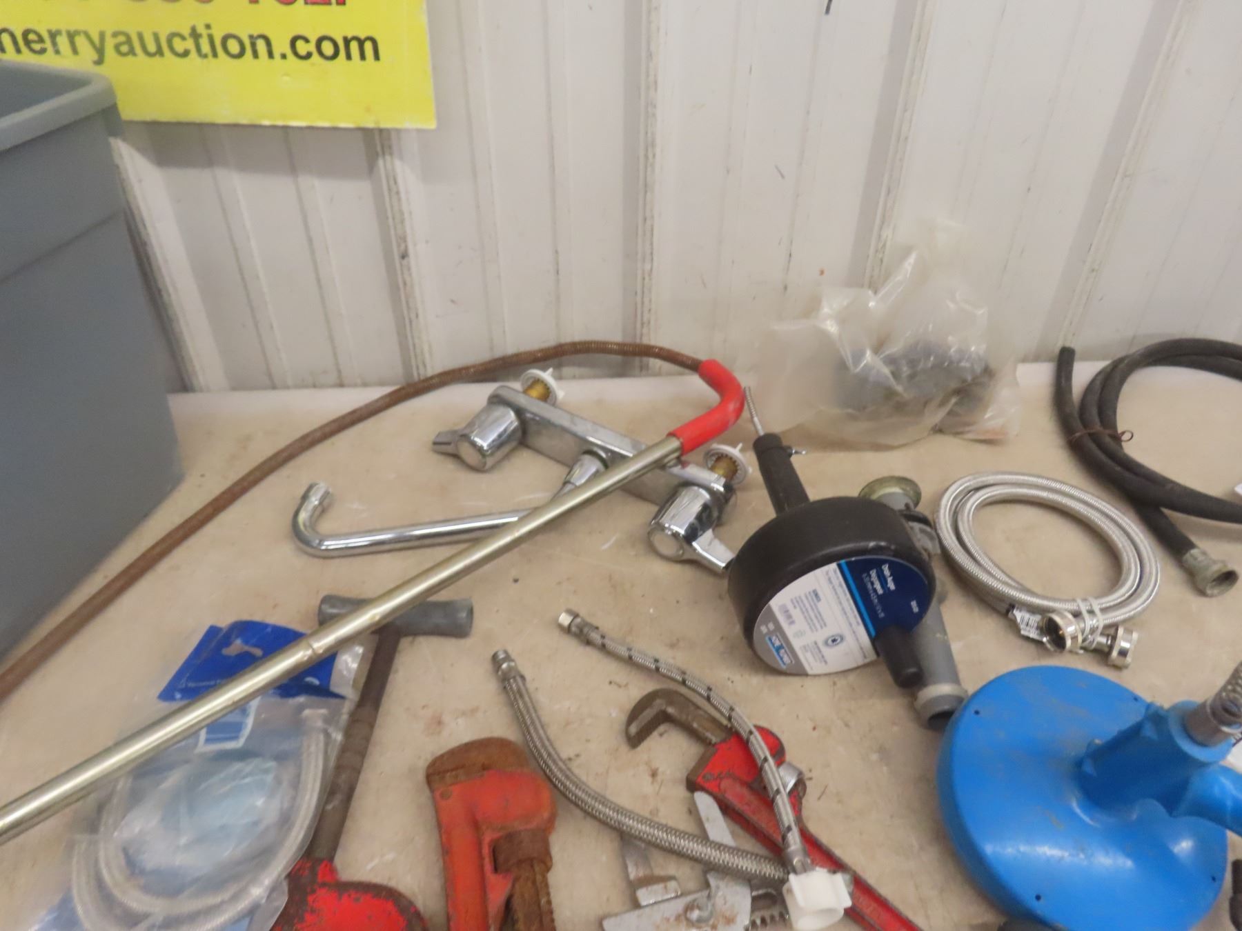 Plumber Supplies + Tooling, Pipe Wrench, Snake, Fittings, Connectors, +