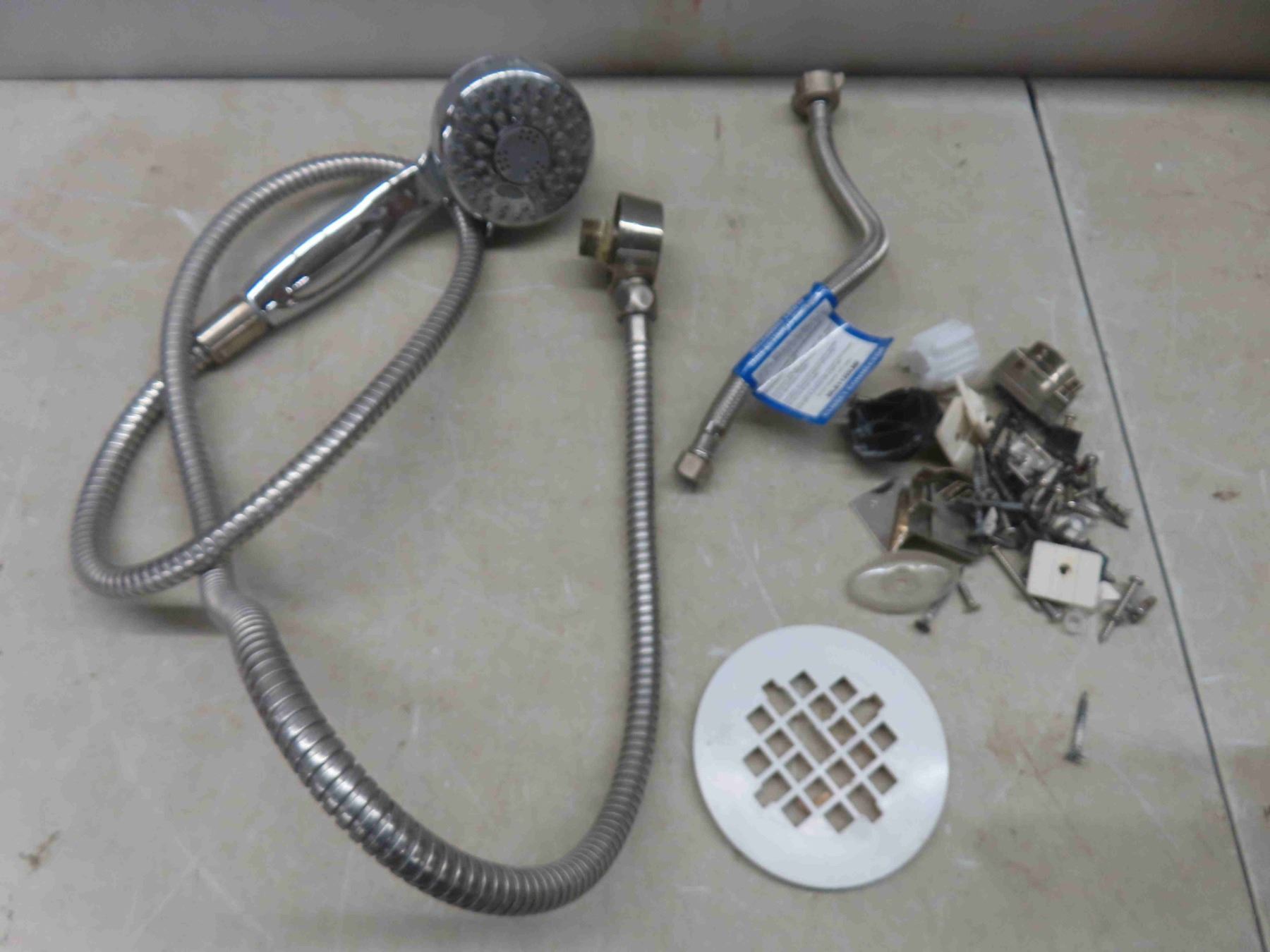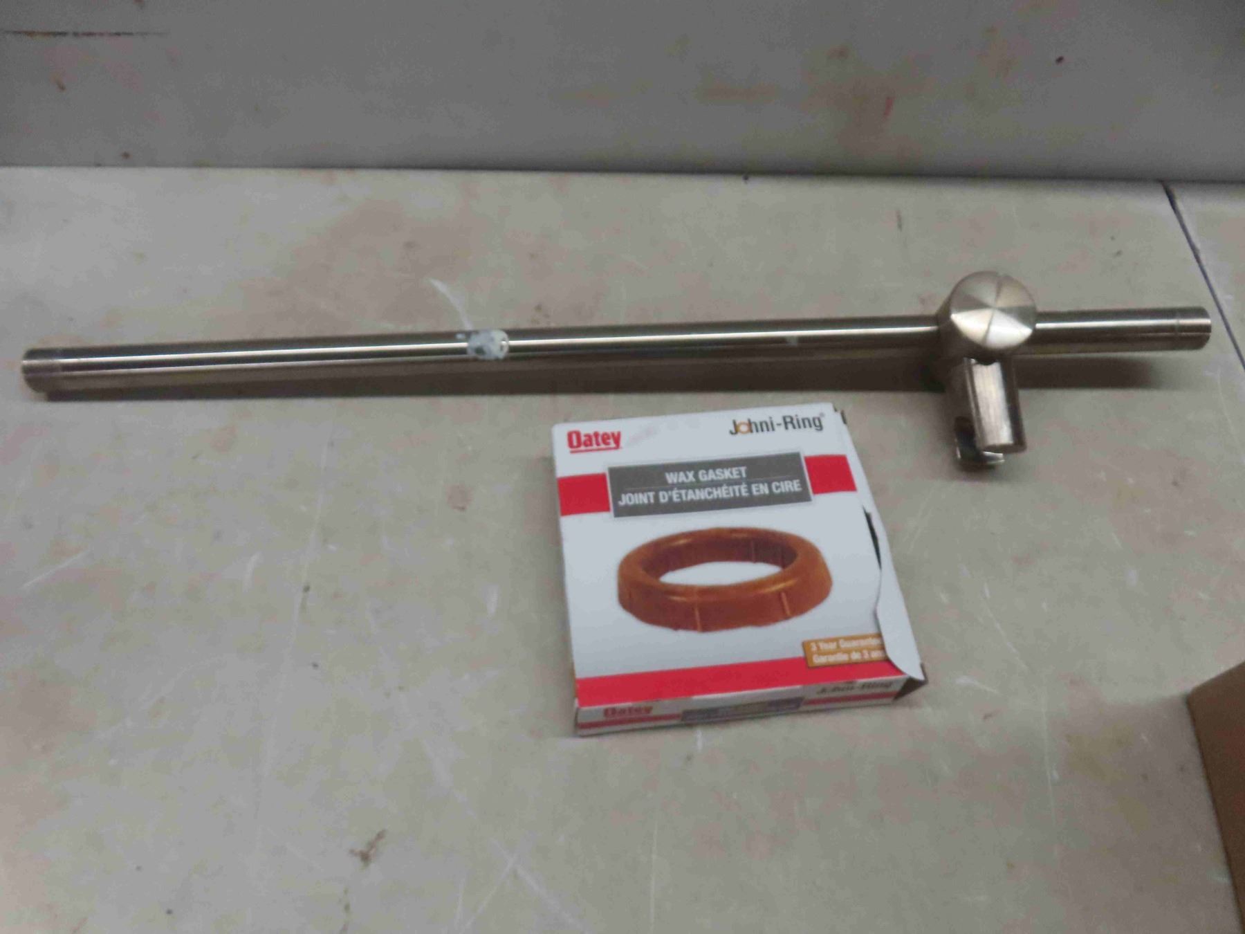 Plumbing/Bathroom Supplies: Towel Ring, Toilet Parts, Shower Head with Hose, New 12'' Braided Stainless Closet Connector & More