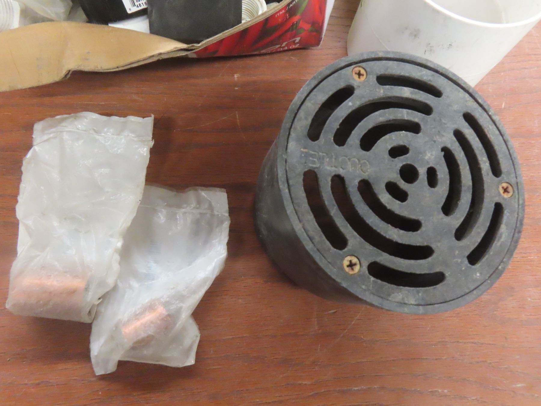 Plumbing Fittings Including ABS, Shower Drain, Braided Hose, Galvanized and Copper Pieces, and More