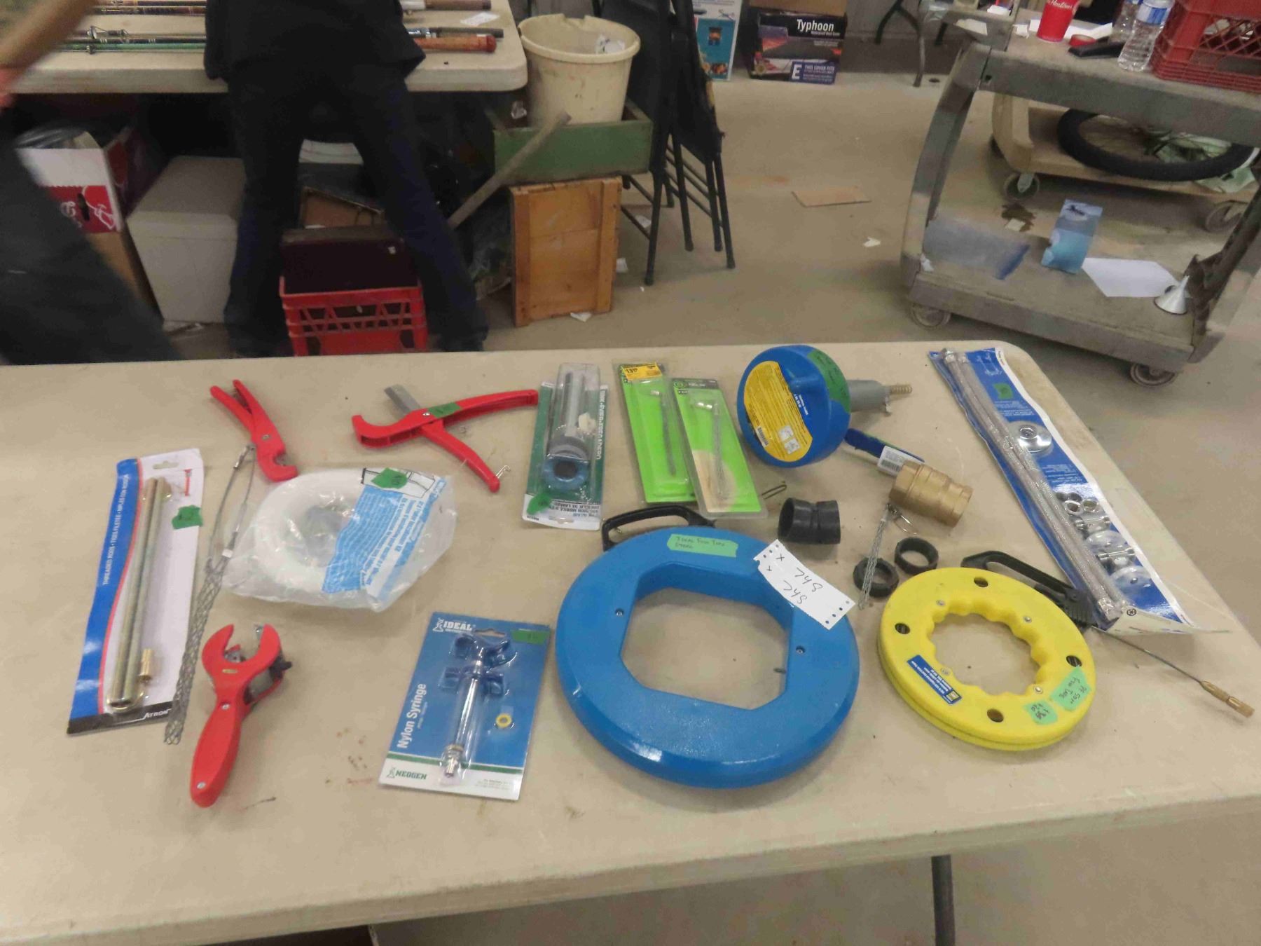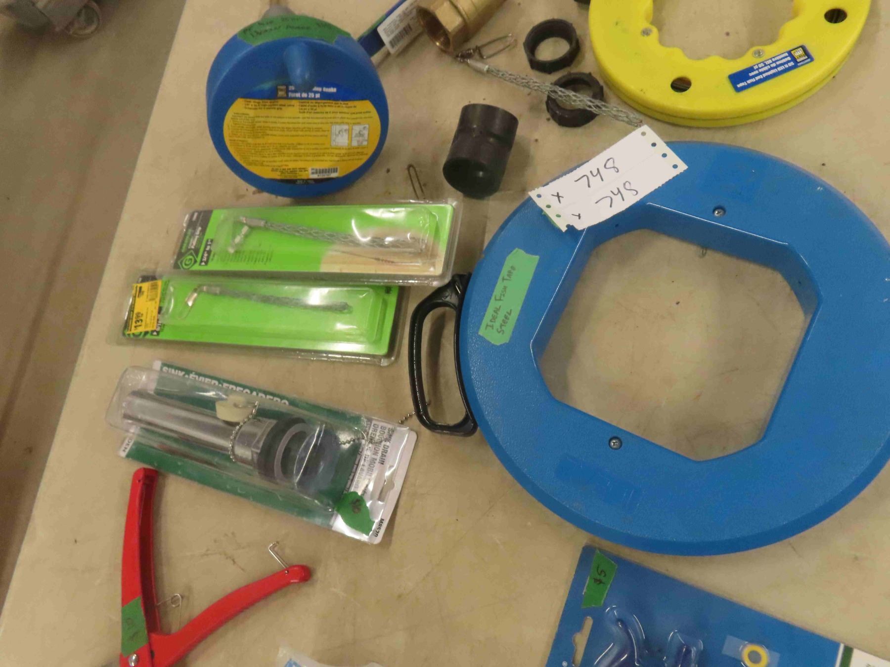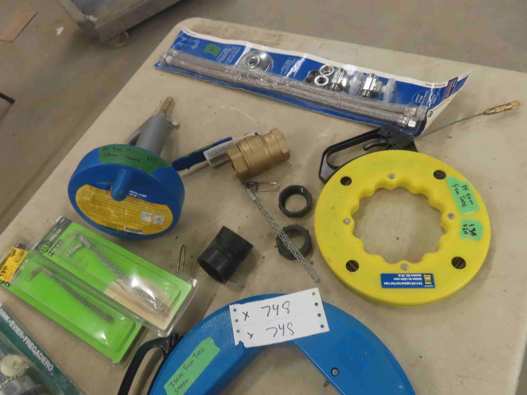 Plumbing Items ; Drain Auger, (2) Fish Tapes, Pipe Cutter, Faucet Kit, plus more