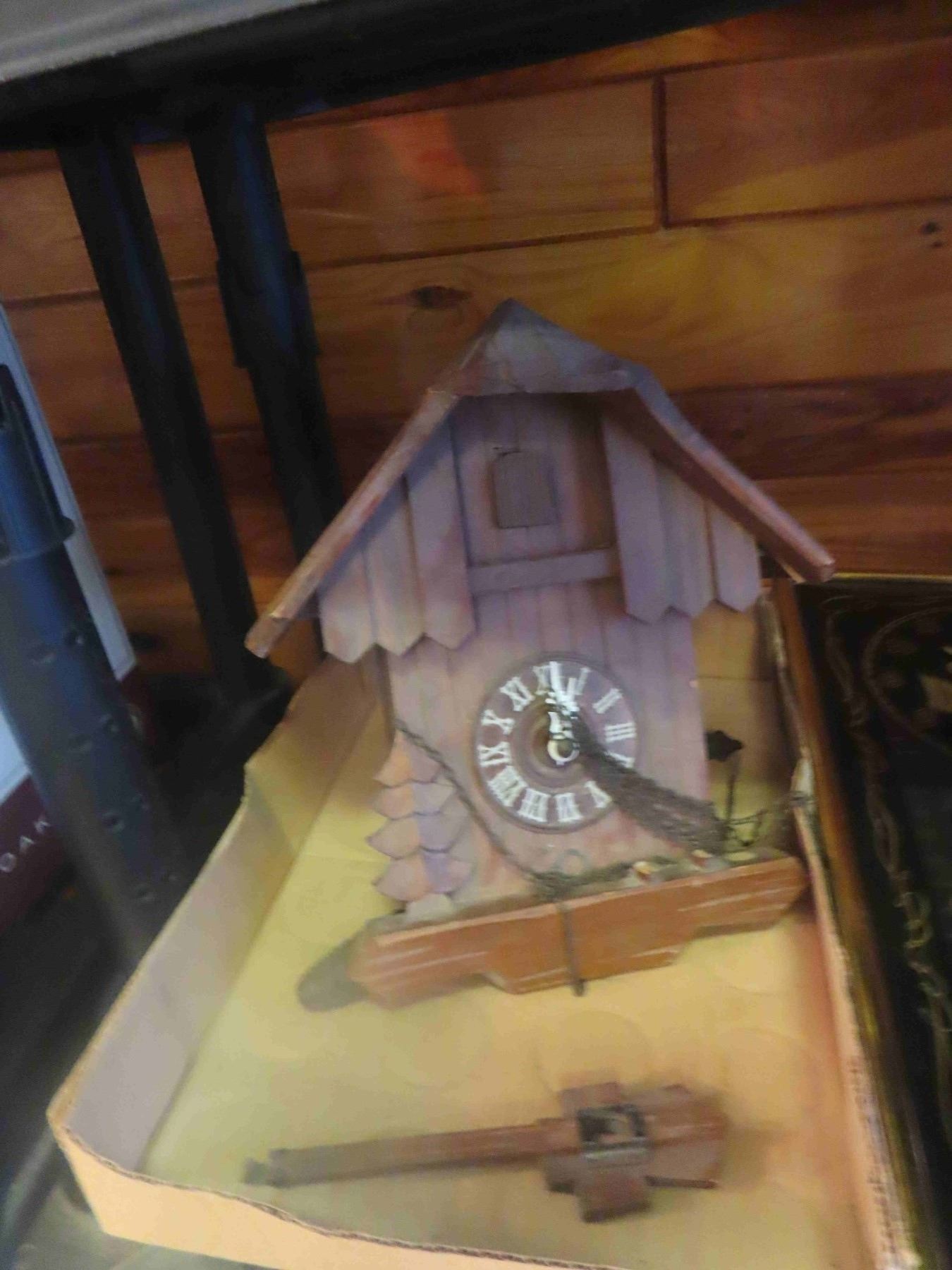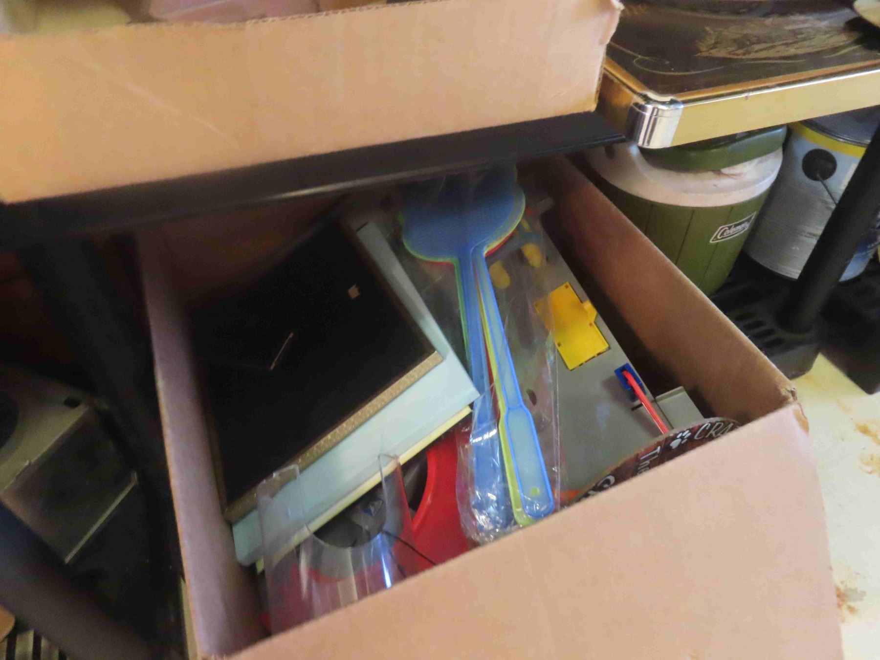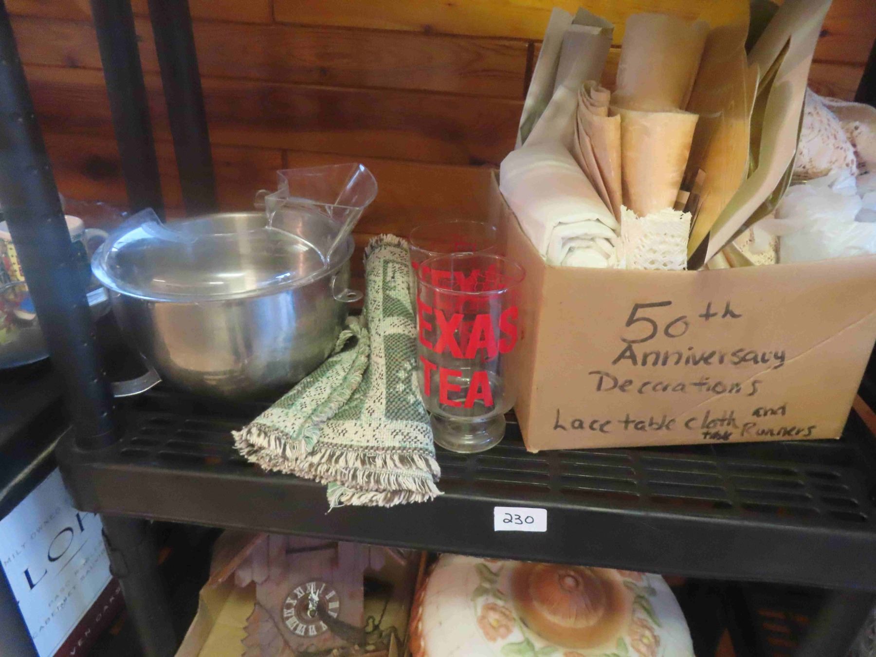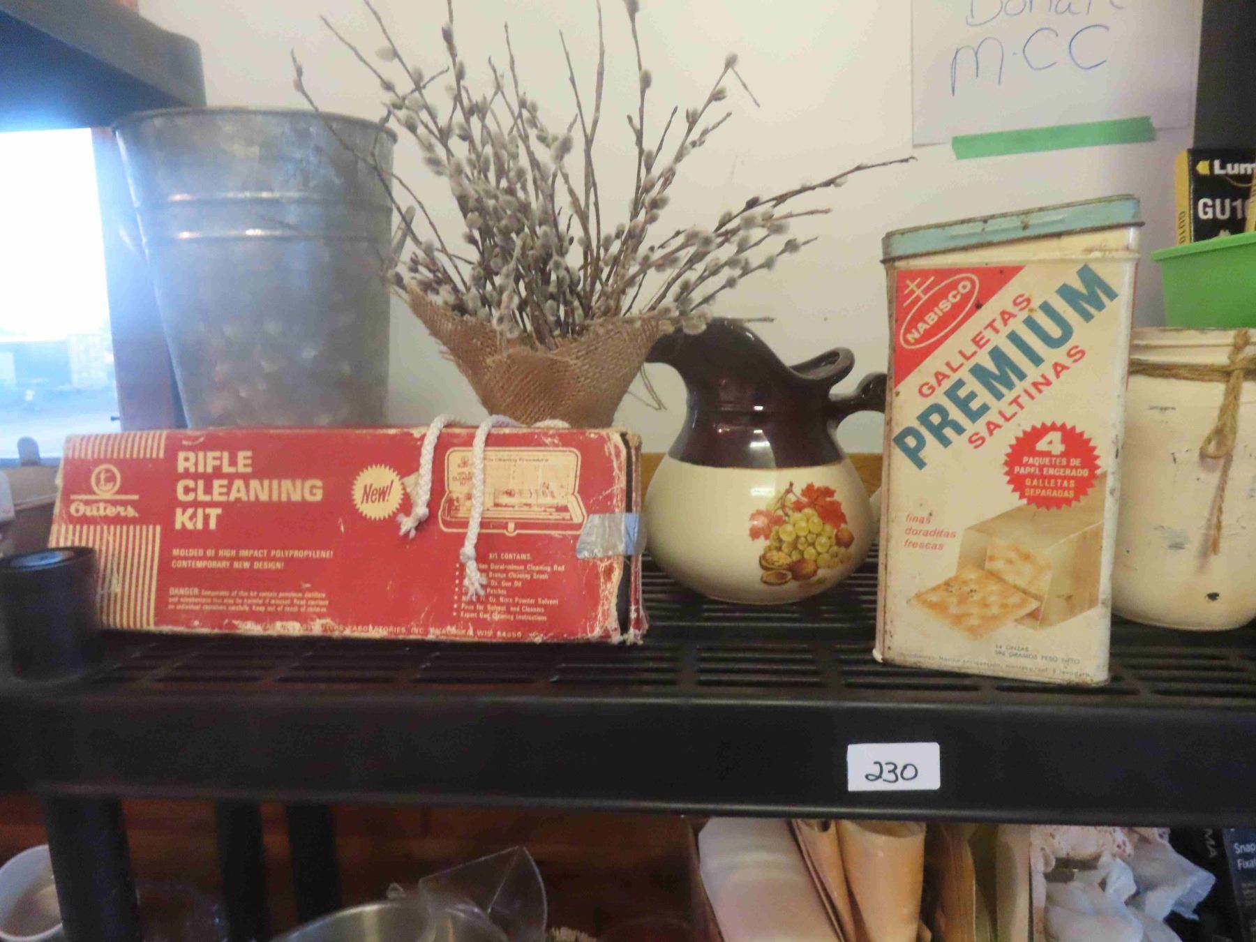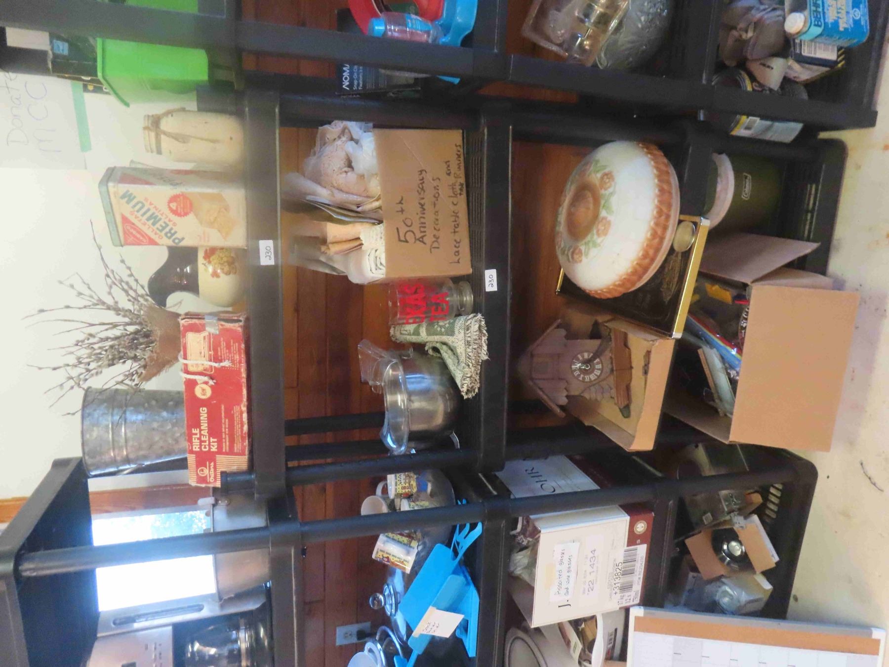Poly Shelf 4 Tier 55" Tall x 30" W x 12" Deep, Beautiful Lamp Shade, Glass Ware, Jack Daniels & Cuckoo Clocks, Rifle Cleaning Kit