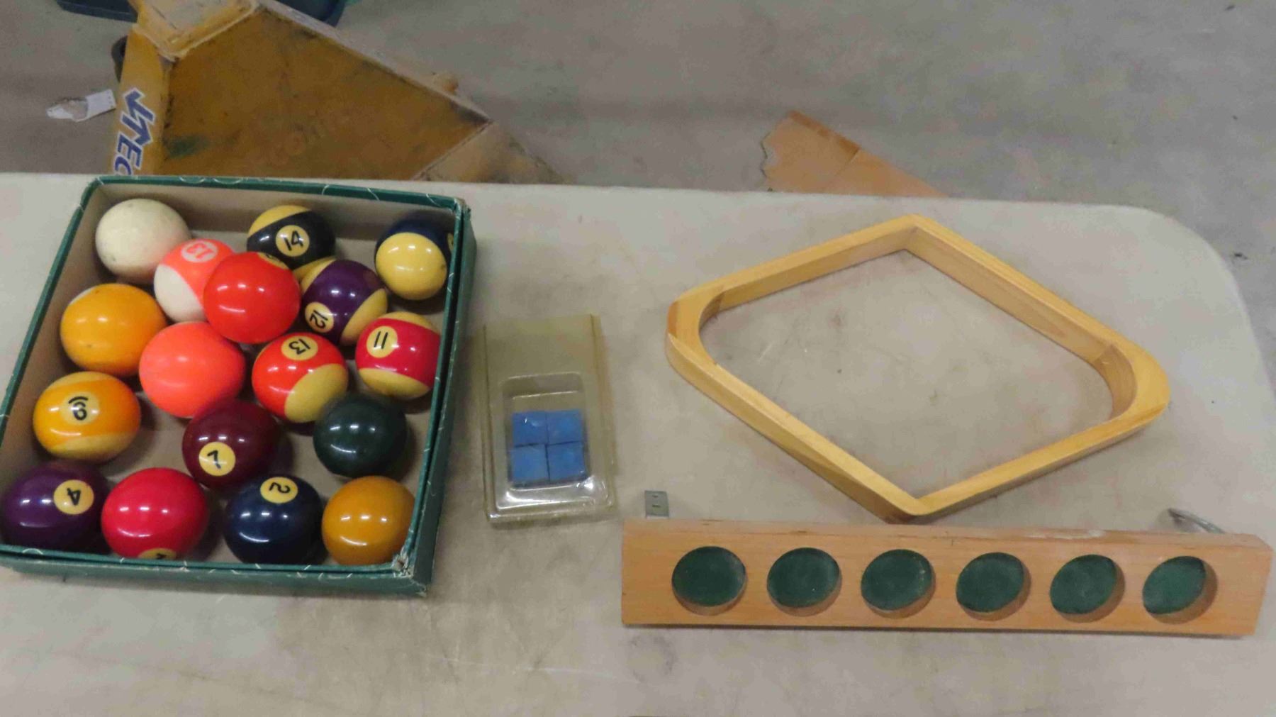 Pool Table Accessories ; Boston / Snooker Balls, Triangles, Chalk, plus more