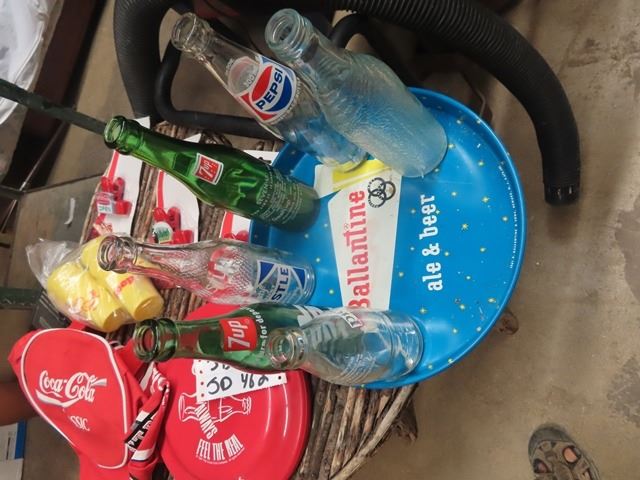 Pop Bottles, Ballantine Metal Tray, Coca Cola Items & Carry On