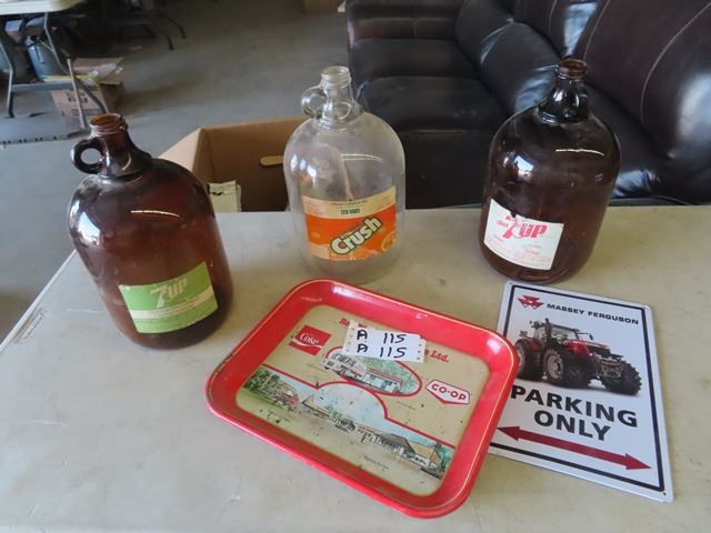 Pop Jugs, Coca Cola Tray & Metal MF Sign