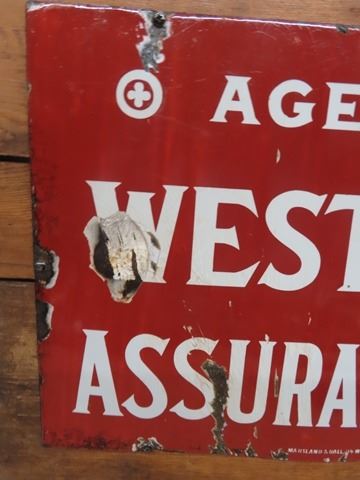 Porc. Western Assurance Co. Sign 11.5  x 17.5