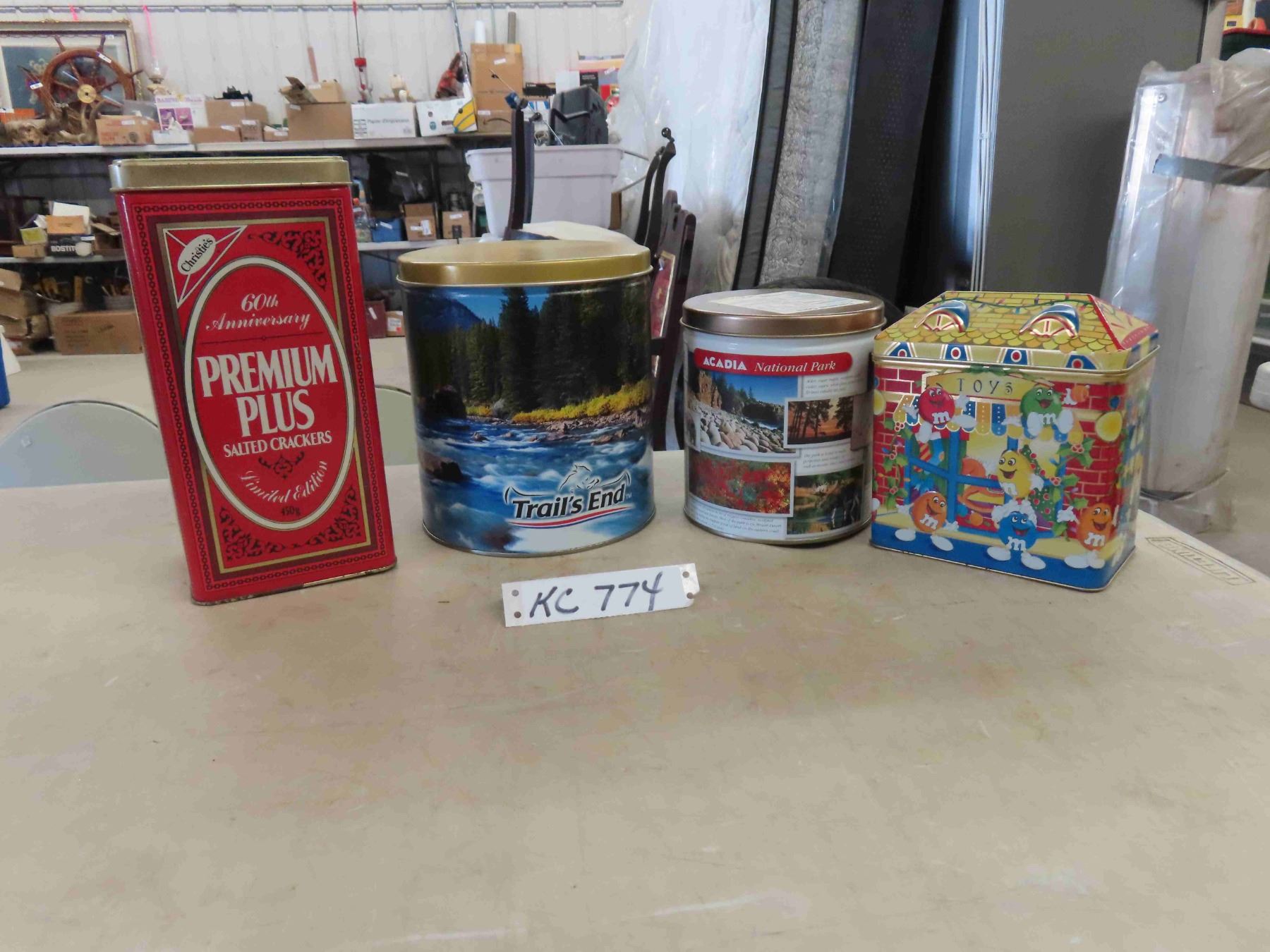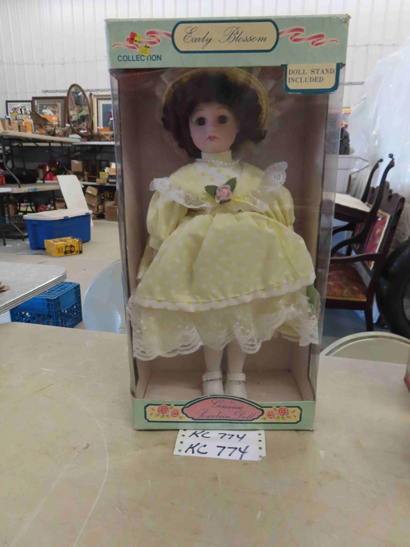 Porcelain Doll 18" Tall & 4 Metal Tins