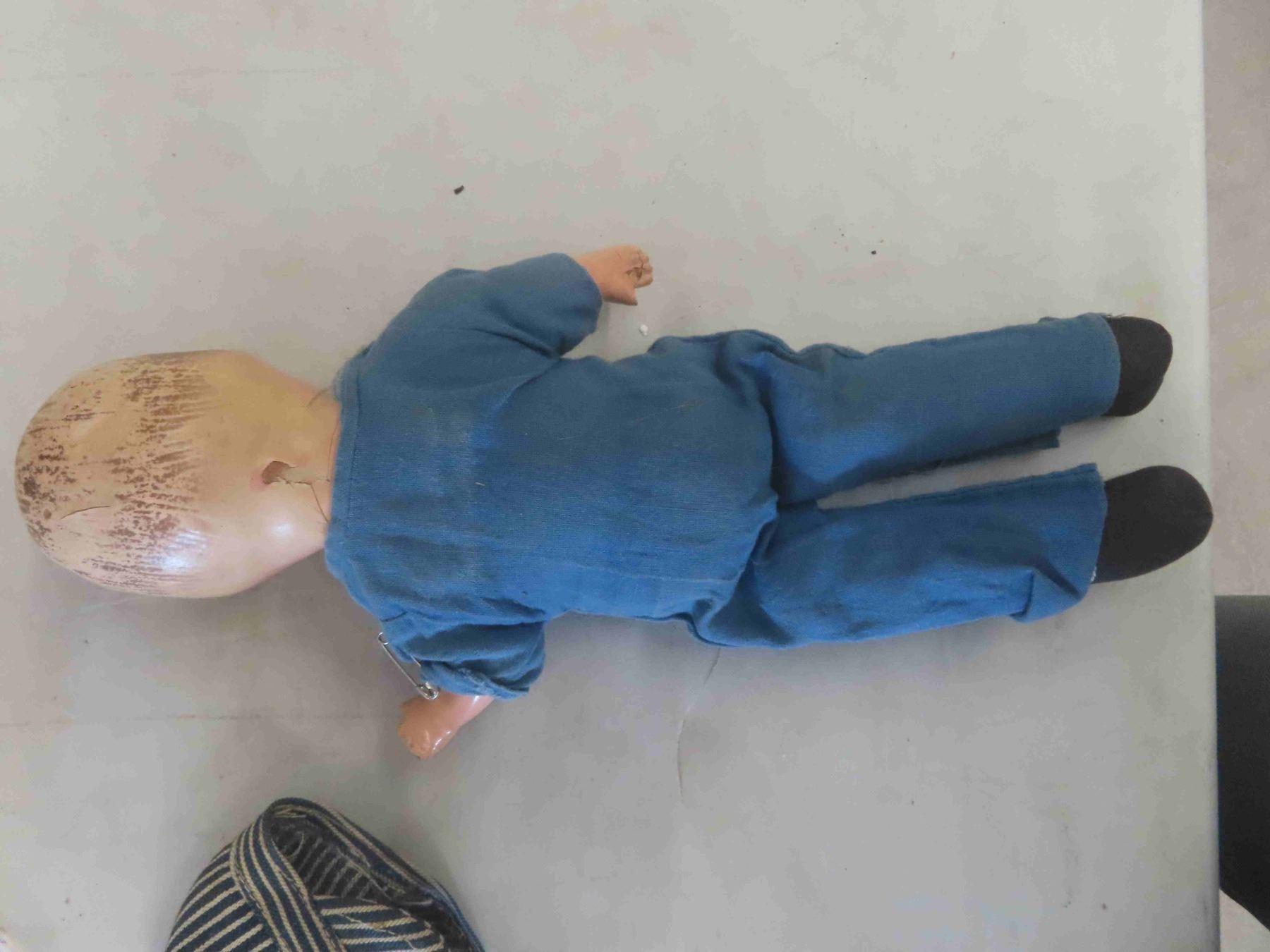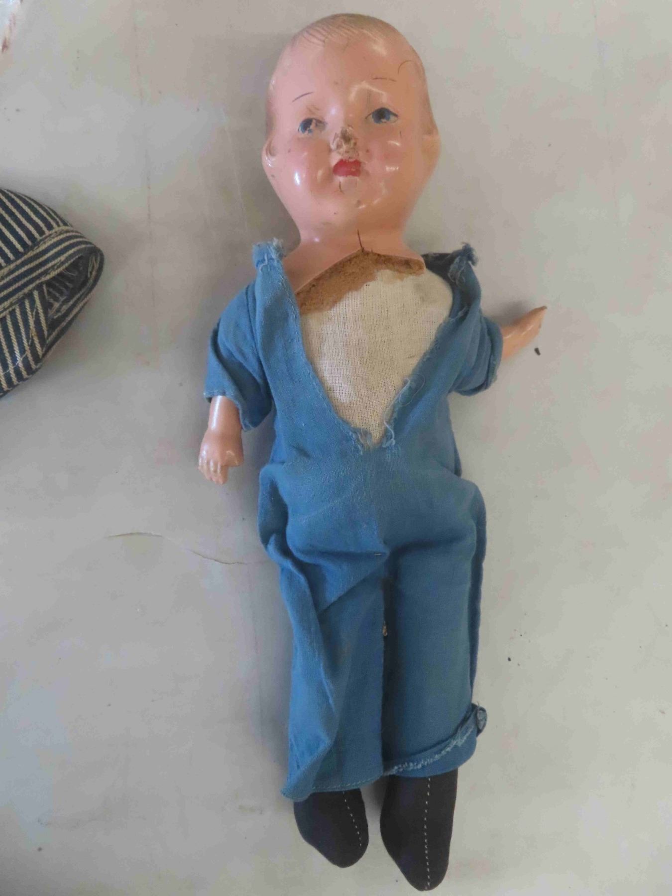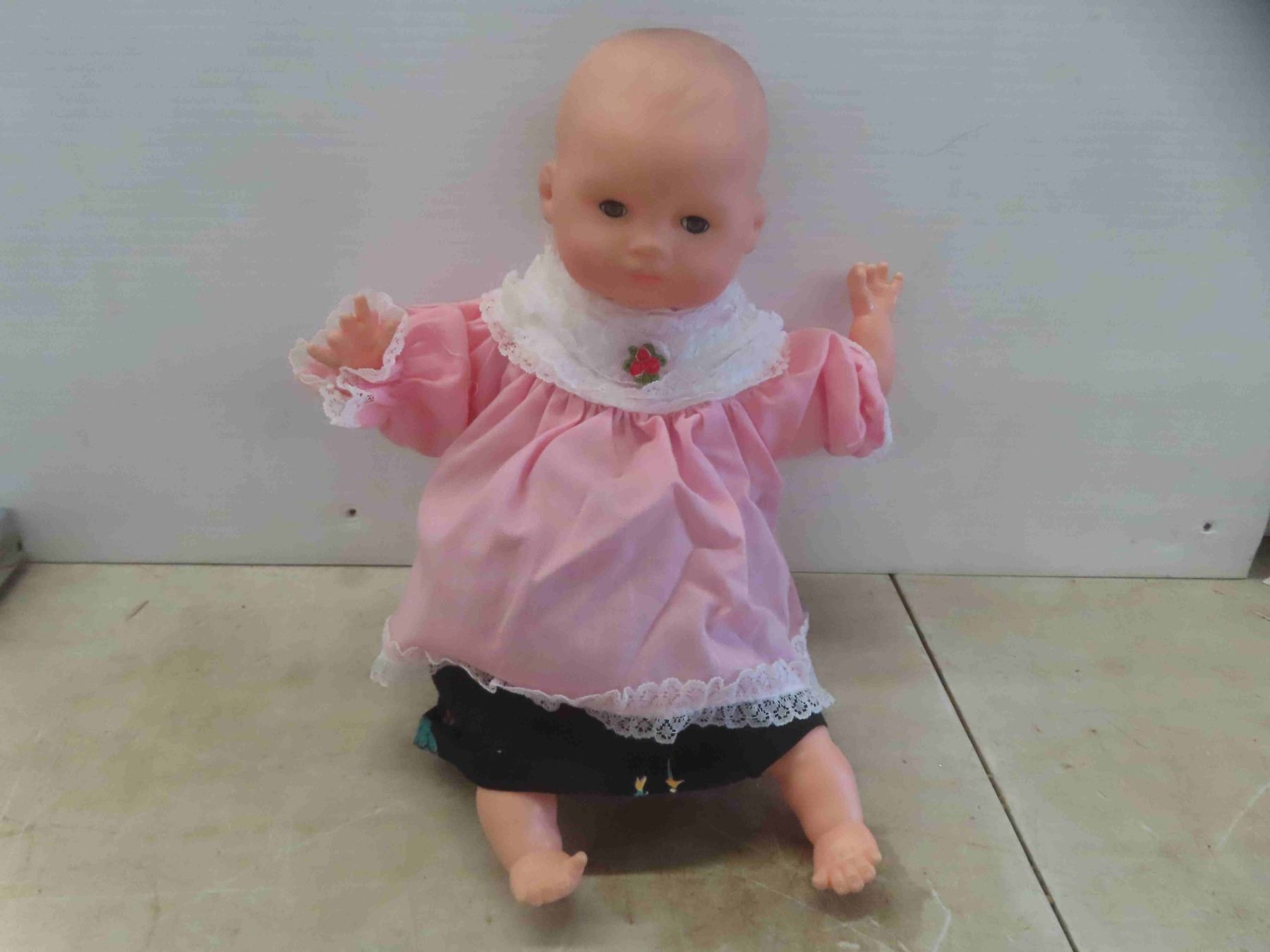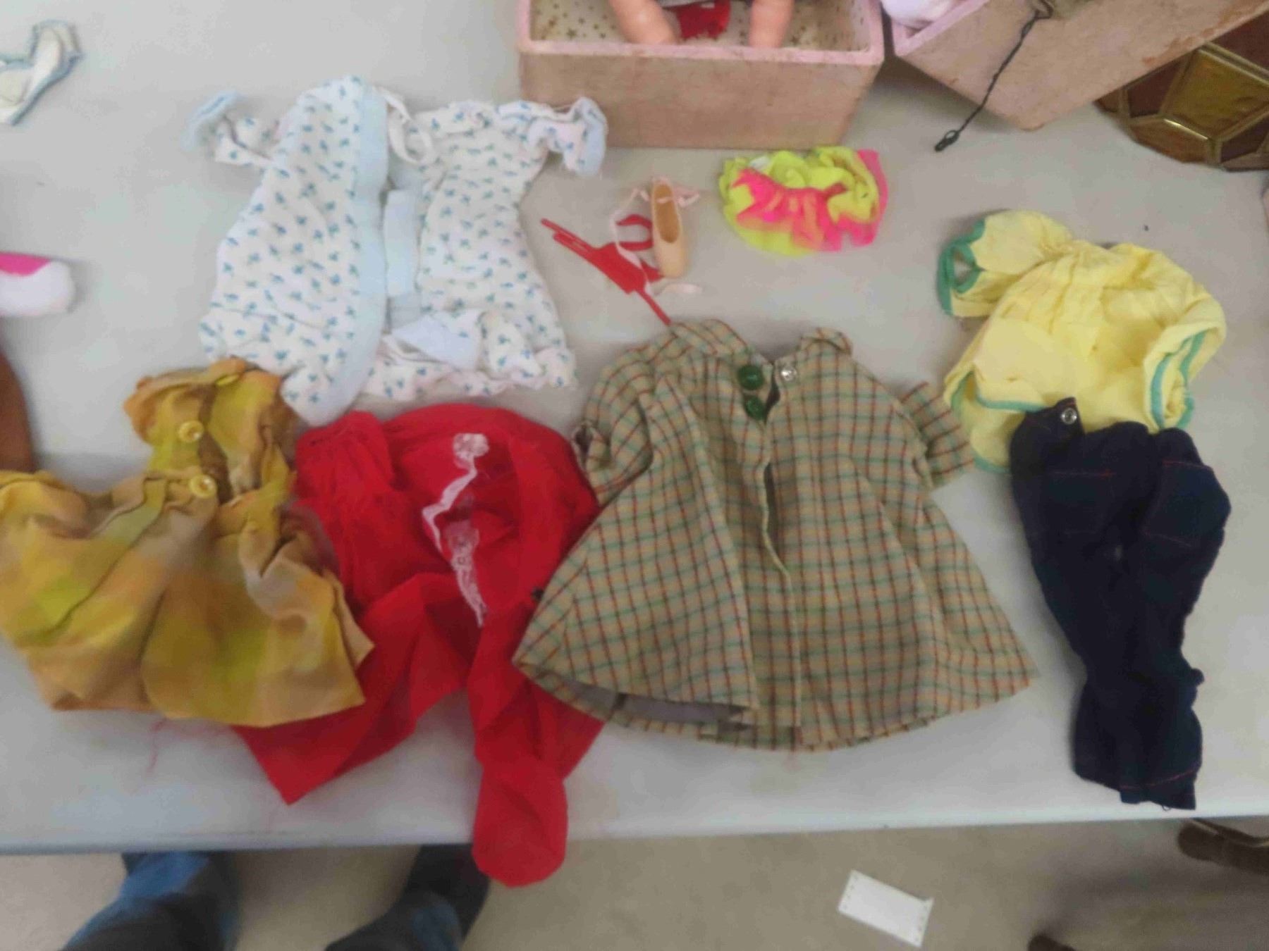 Porcelain Doll on Stand 17'' Tall , Doll Case 8'' x 8 1/2'' x 15 3/4'' , Doll Clothing