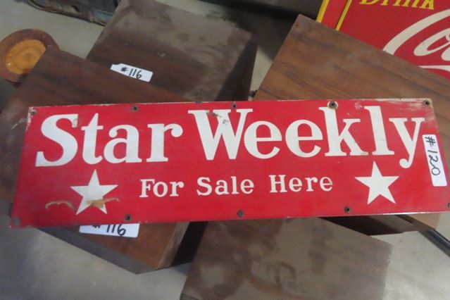 Porcelain Star Weekly Vintage Sign 8'' x 27 1/2''