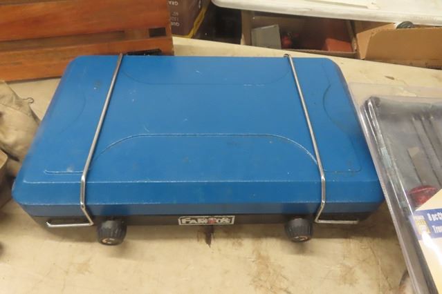Portable Camp Stove, Pool Ladder, Chainsaw Sharpening Kit, Seeder