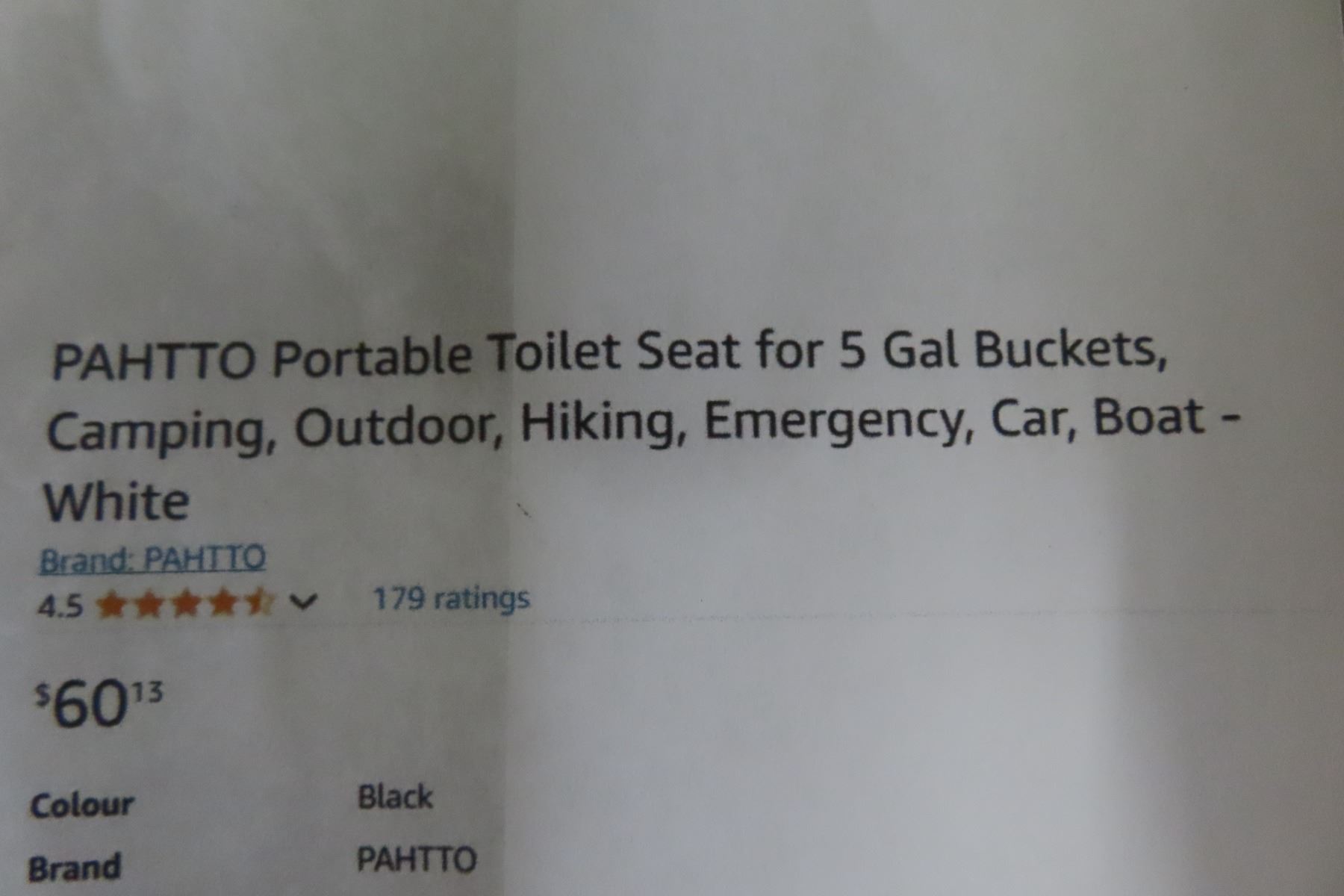 Portable Toilet Seat For 5 Gallon Buckets - New or Store Return