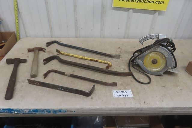 Porter Cable All Metal Circular Saw, Several Pry Bars, 2 Hammers